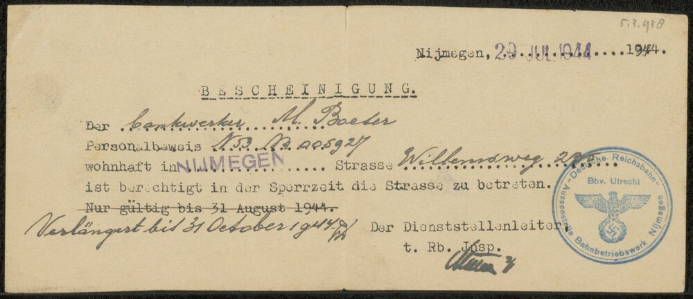 Bescheinigung M. Boeder, 29 juli 1944