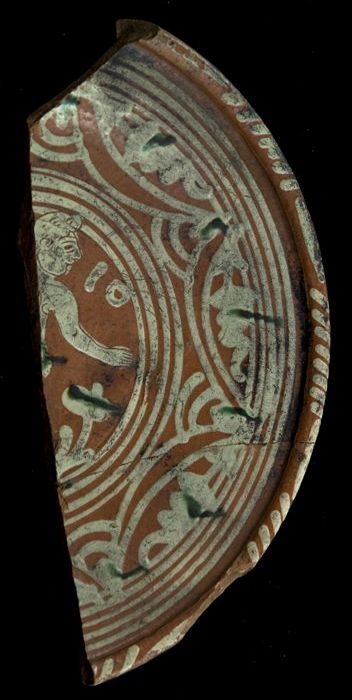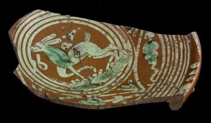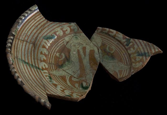 Bodemfragment Werra bord, spiegeldecor dier, jaartal...