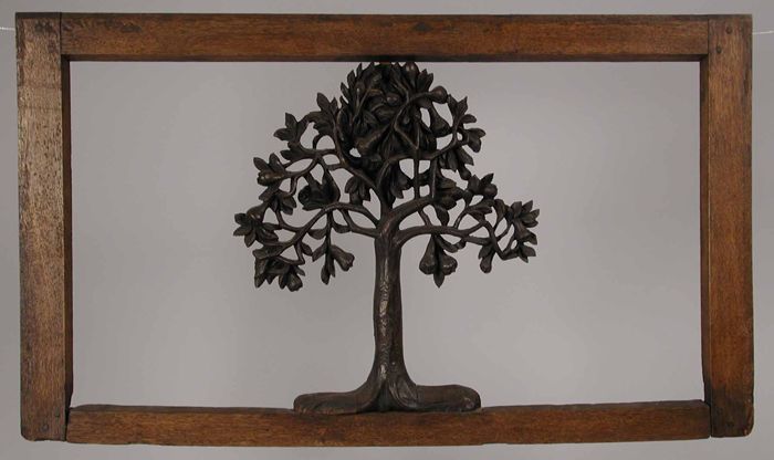 Eikenhouten afsluiting van kelderraam met gestileerd...