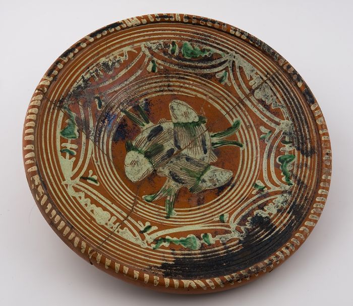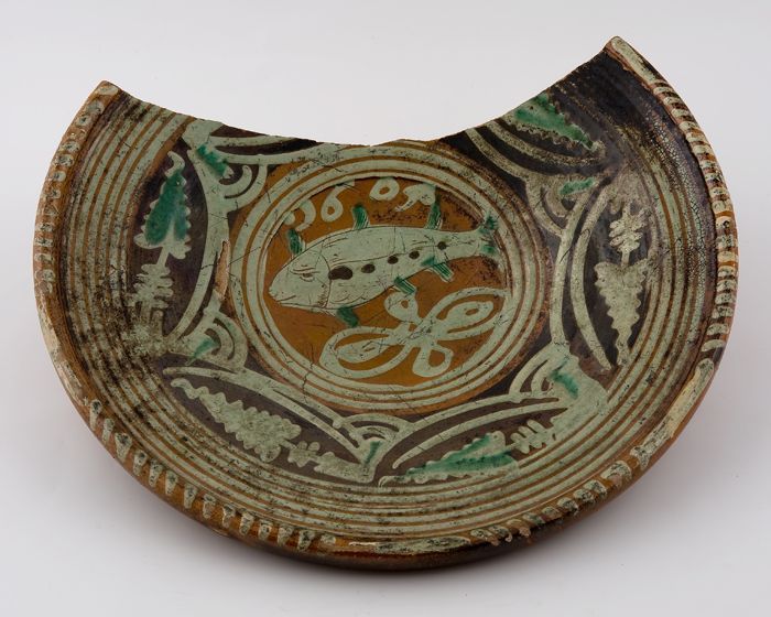 Bodemfragment Werra bord, spiegeldecor met vis, sgra...