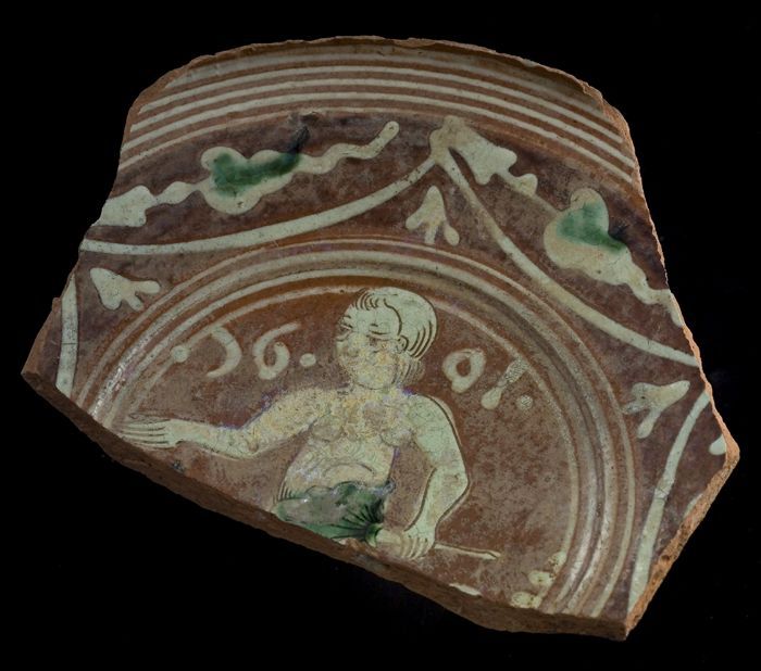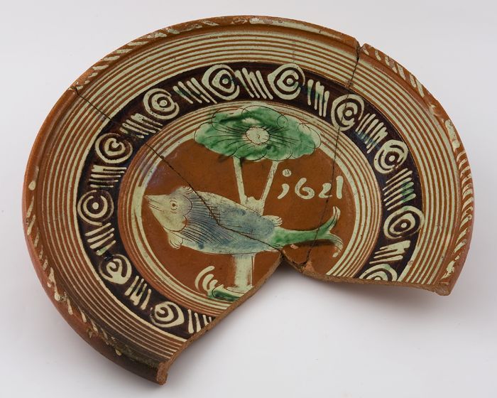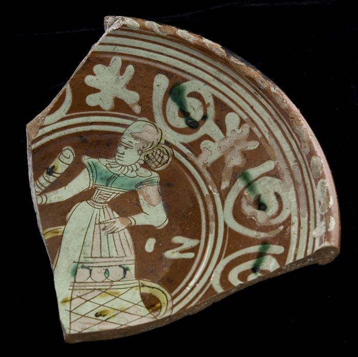 Fragment Werra bord, spiegeldecor Adam, jaartal "161...