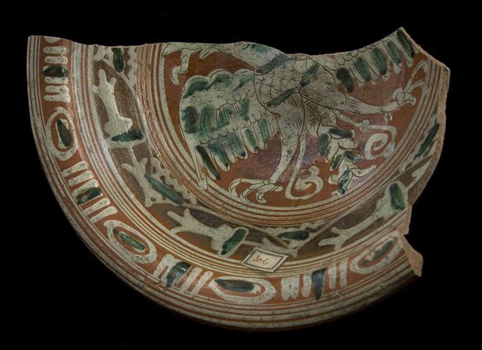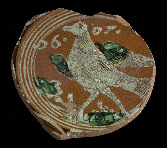 Bodemfragment Werra bord, spiegeldecor met vogel, li...