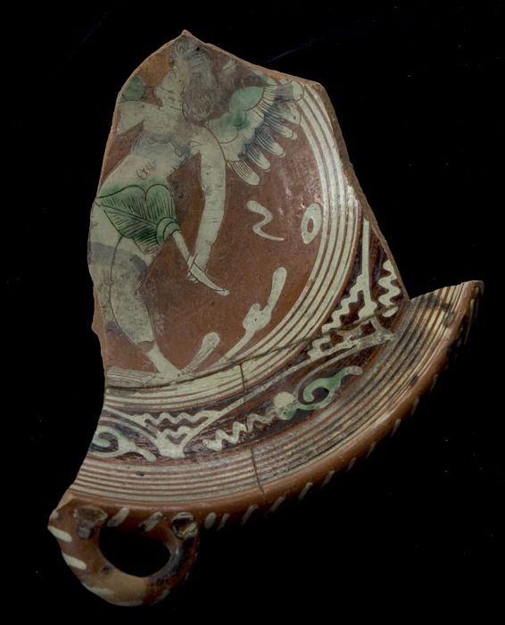 Fragment Werra schaal met oren, spiegeldecor gevleug...