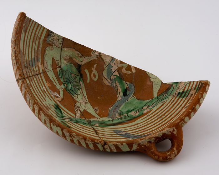 Fragment Werra, grote kom met oren, spiegeldecor par...