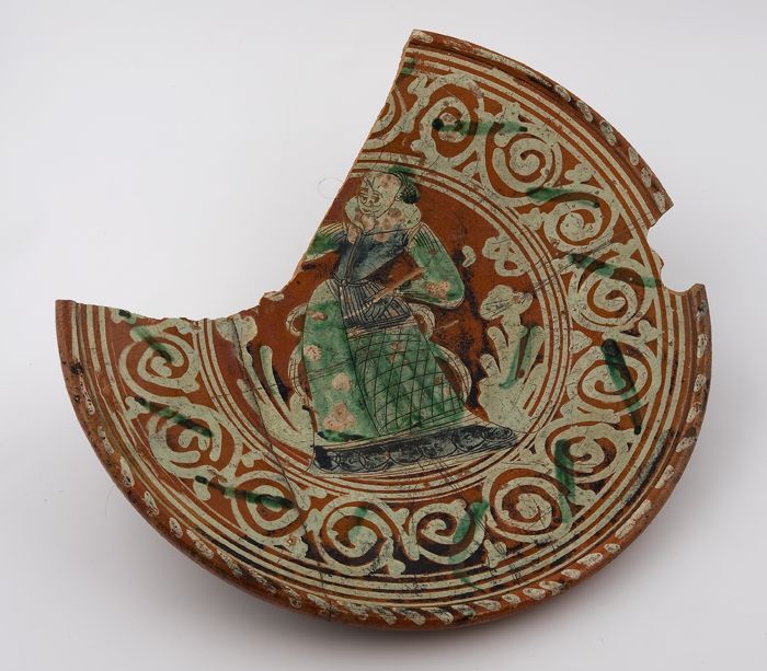Fragment Werra bord, spiegeldecor welgestelde dame i...