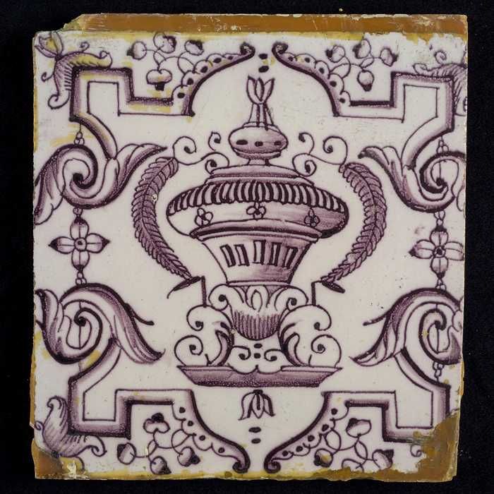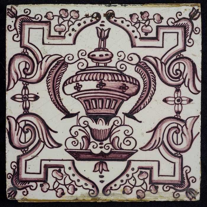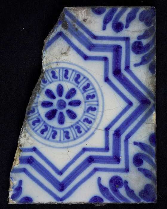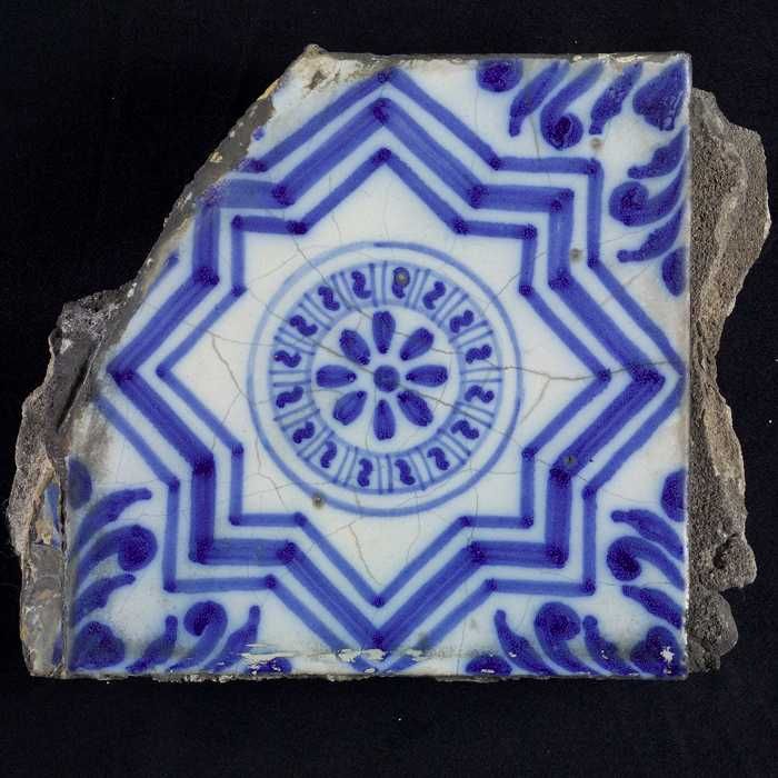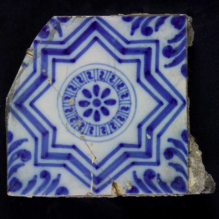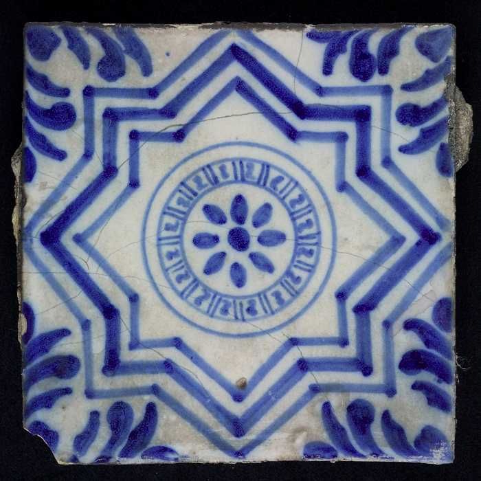 Ornamenttegel, achtpuntige ster, met bloem, hoekmoti...