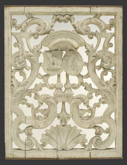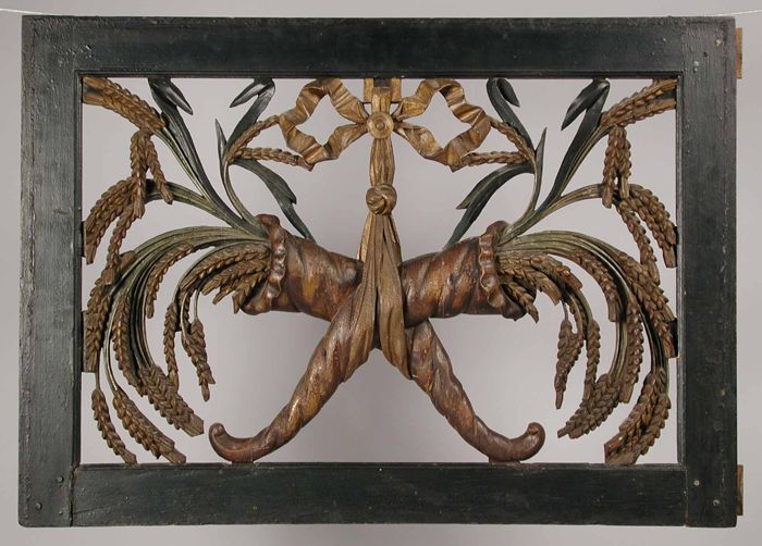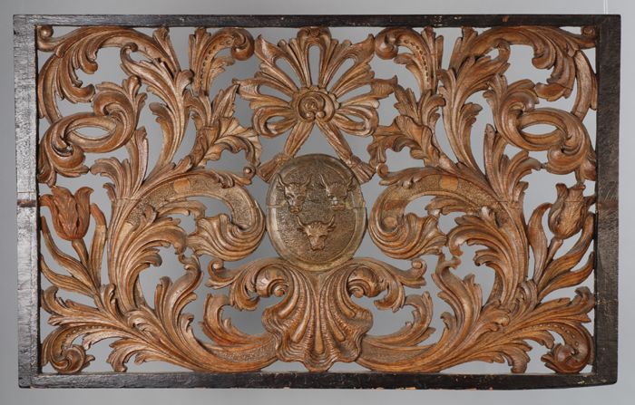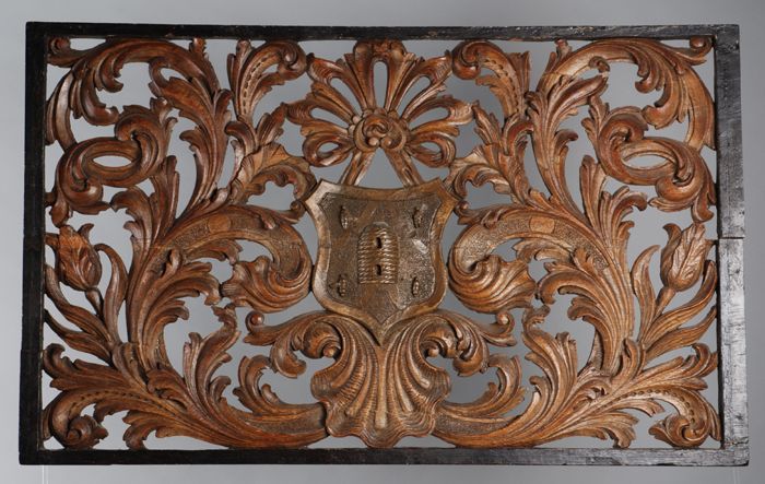 Dessus de porte met gesneden, gekroonde voorstelling...