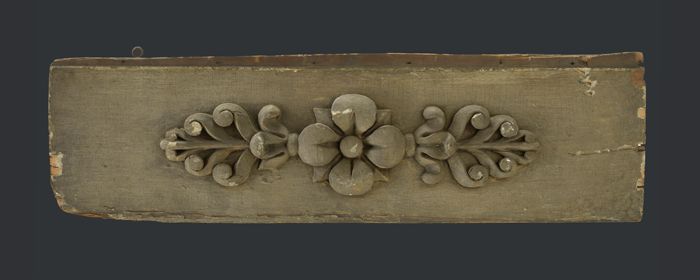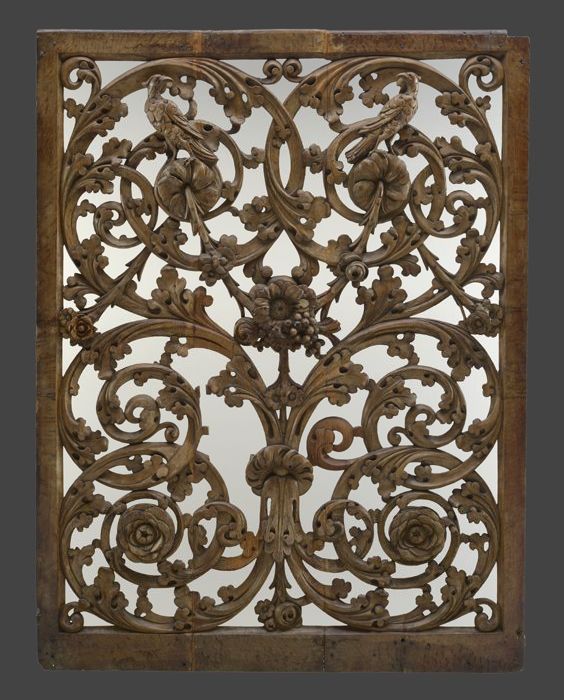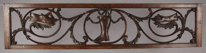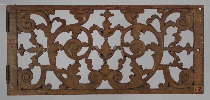 Bovenlicht met gesneden bladmotieven, krullend rond ...