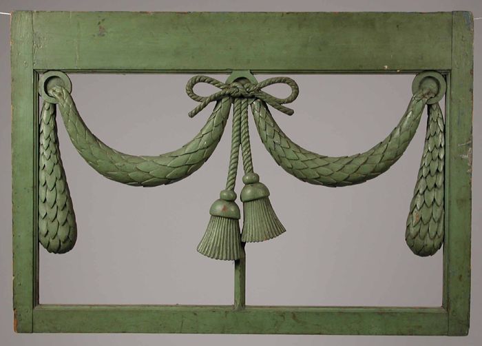 Groen geschilderd bovenlicht met gesneden guirlande ...