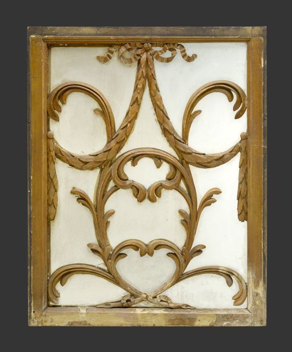 Bovenlicht met gesneden krullende bladeren en twee g...