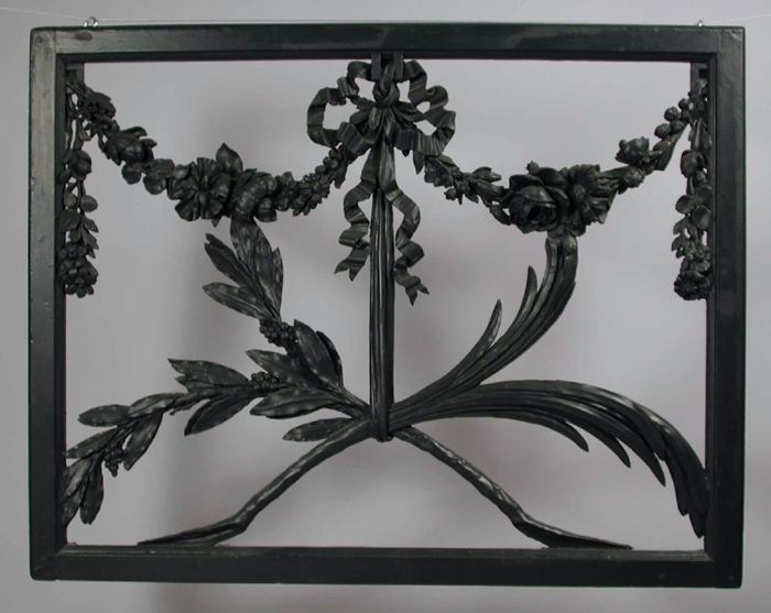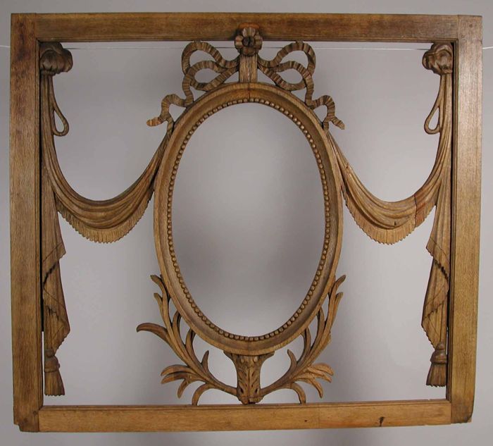 Bovenlicht met gesneden guirlande, krans en krullend...