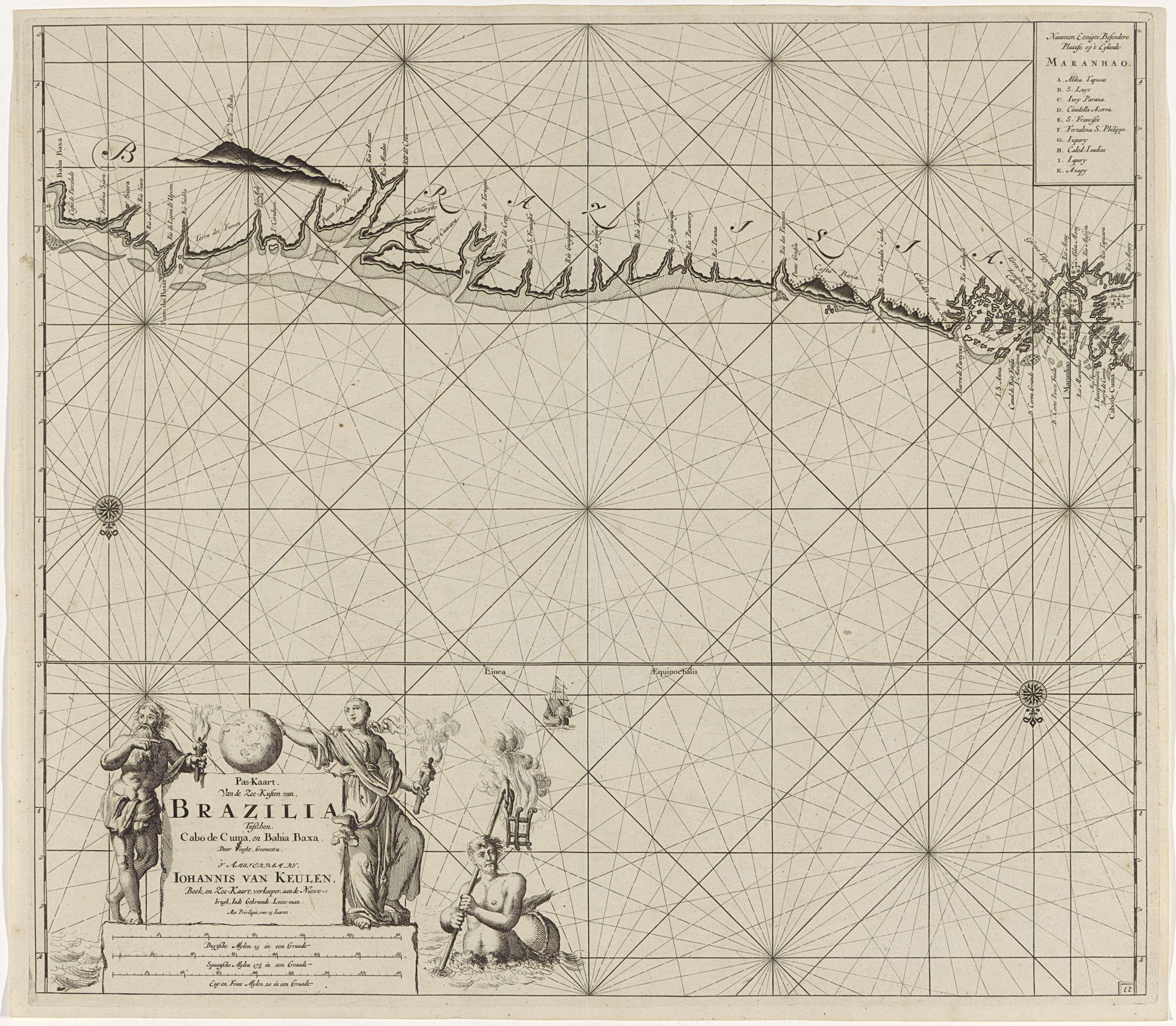 Paskaart van de noordoostkust van Brazilië