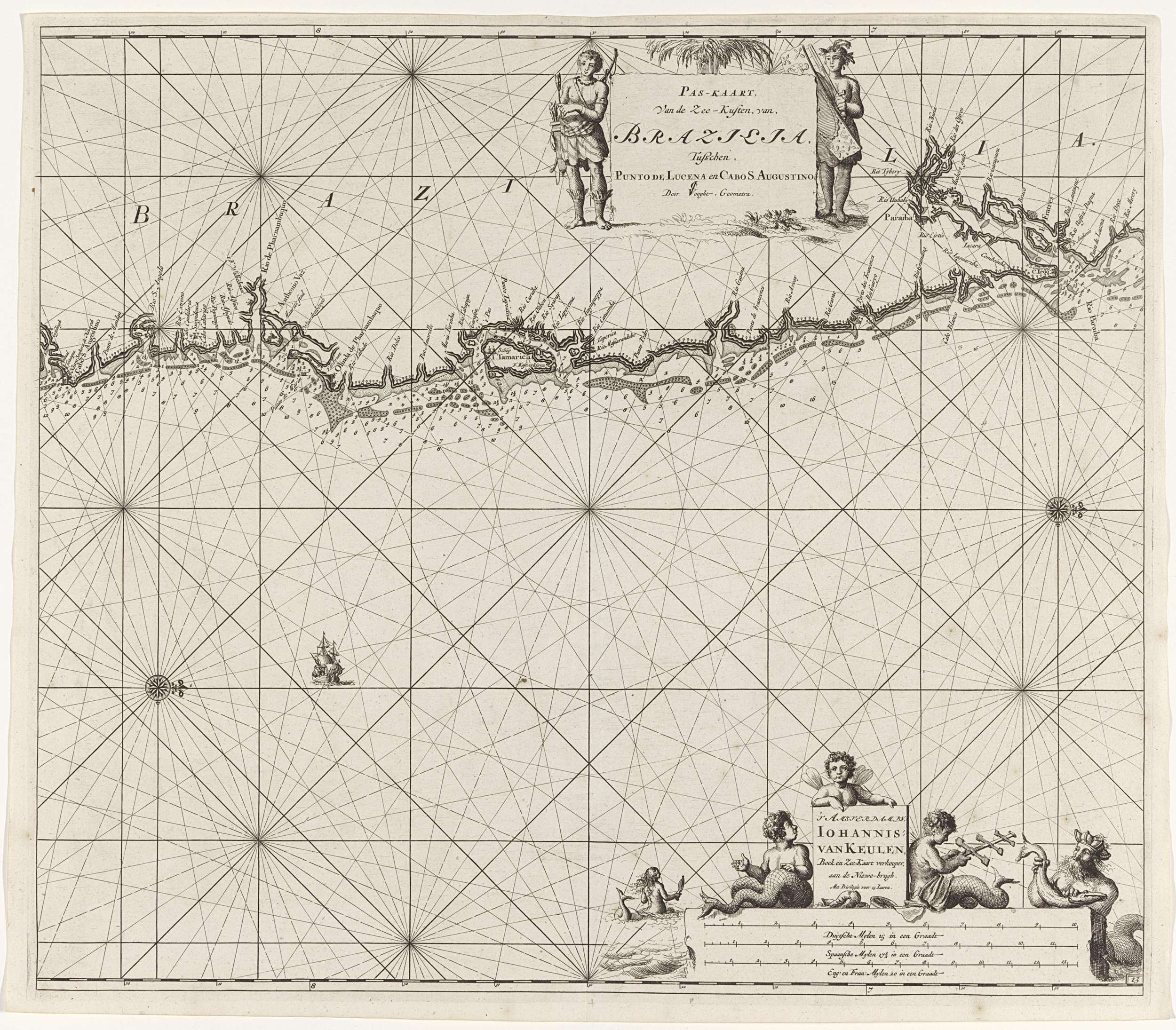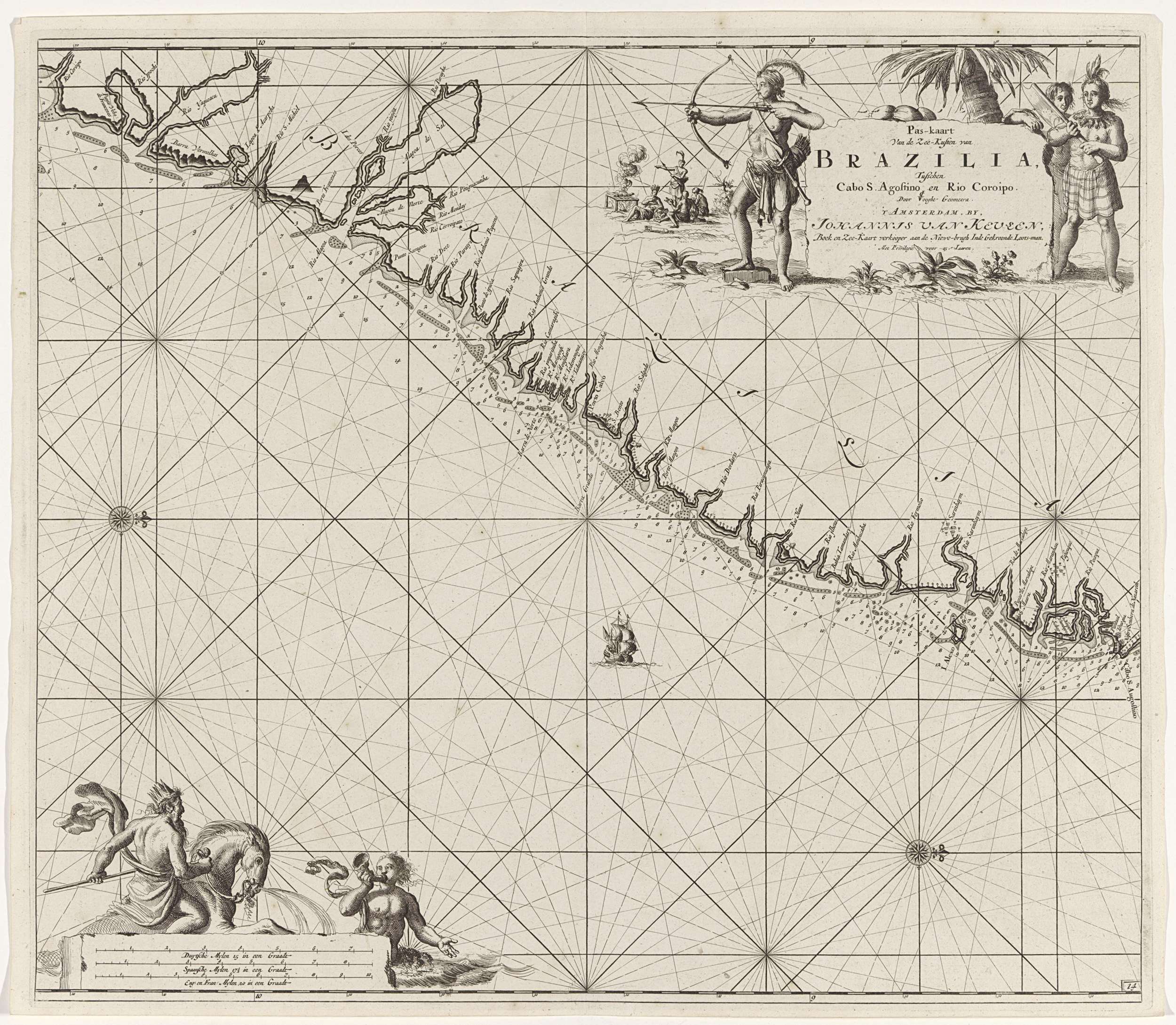 Paskaart van een deel van de kust van Brazilië, Urug...