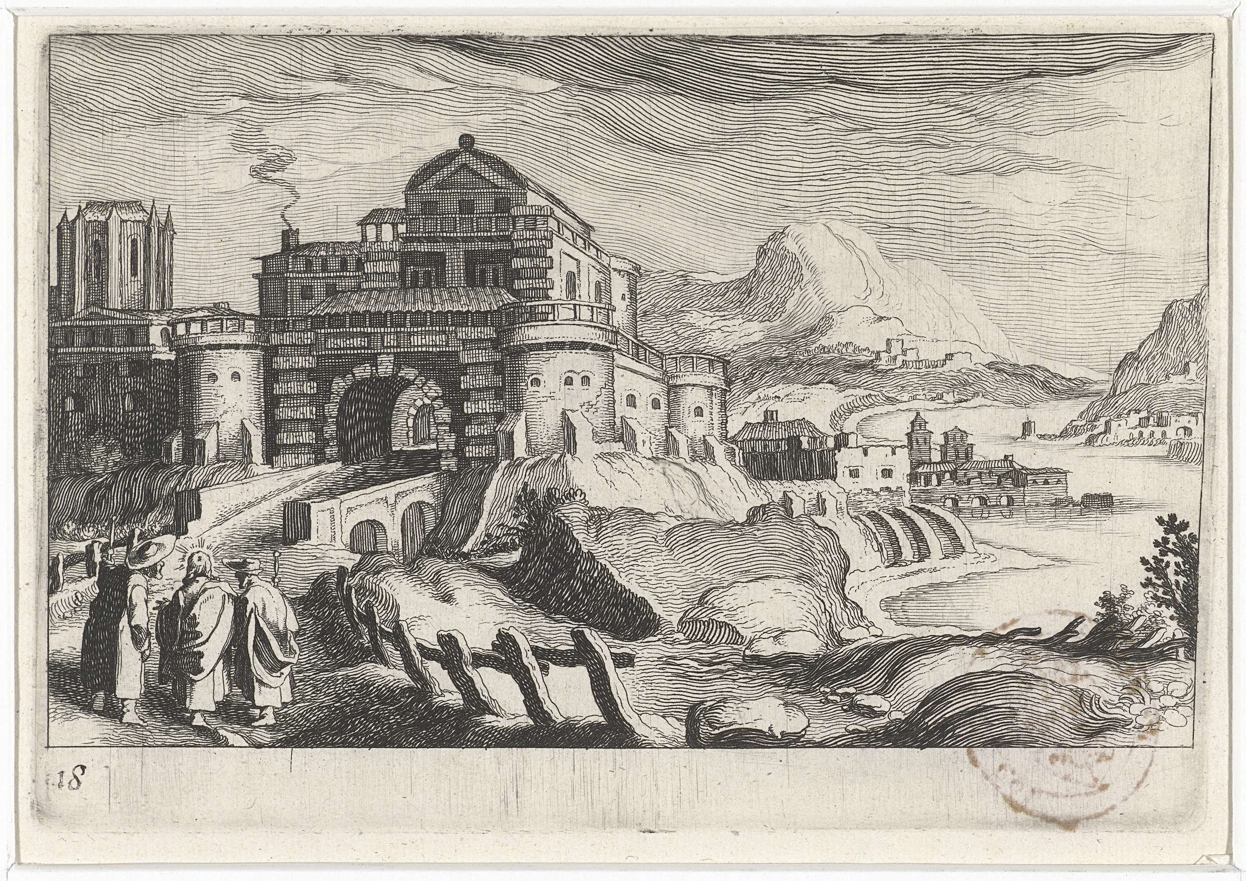 Stadsgezicht met een gebouw met een koepelvormig dak
