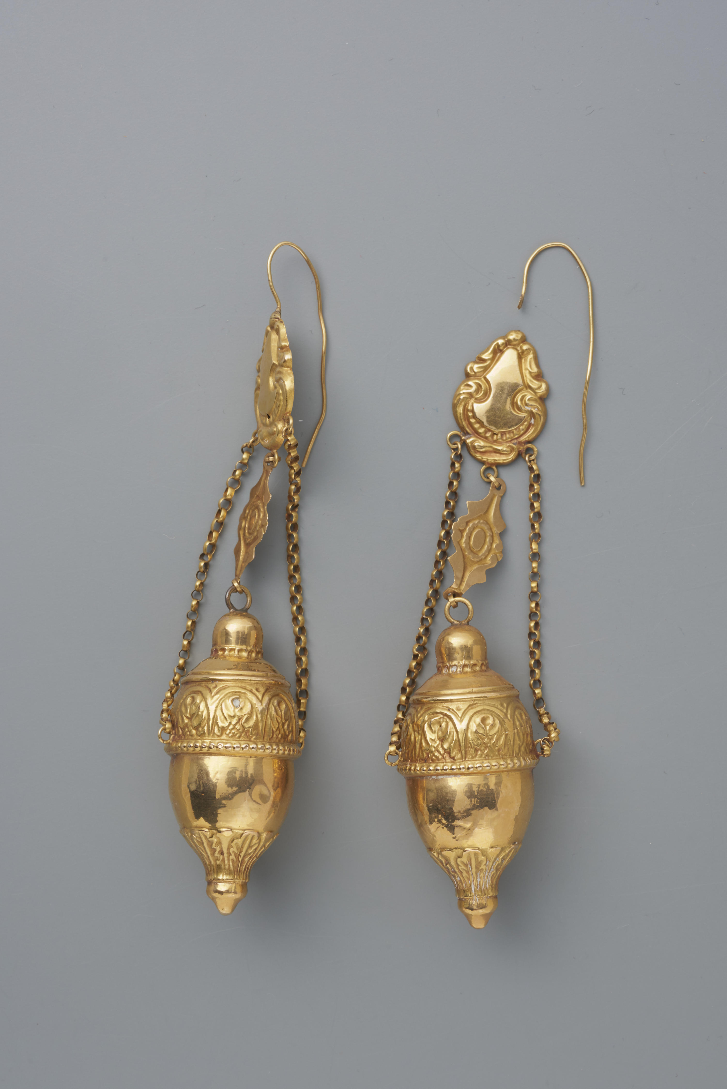 Paar gouden 'eikelbellen', Hulst, circa 1850