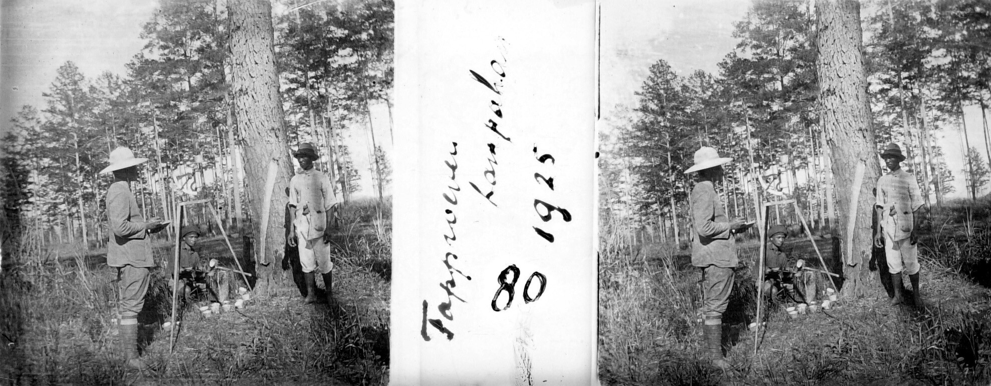 Proef met het aftappen van een Pinus dennenboom in d...
