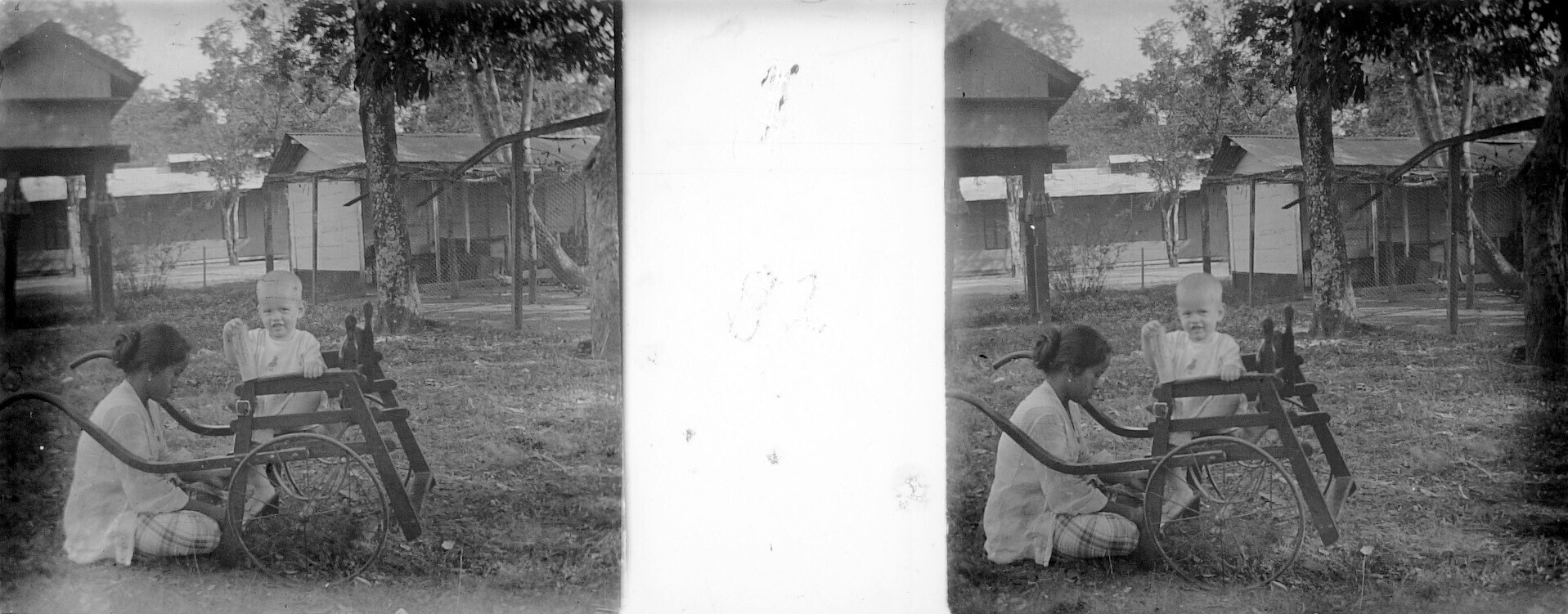 Hans Japing met zijn verzorgster bij de kinderwagen,...