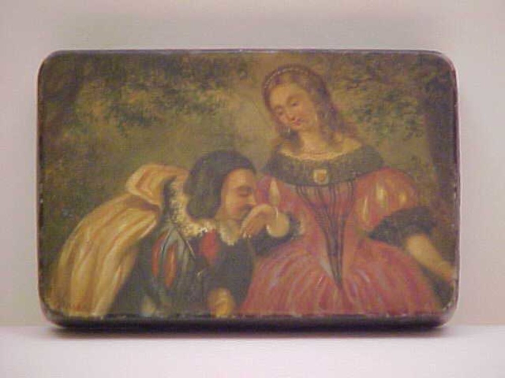 Tabaksdoos van ijzer, met voorstelling van een galan...