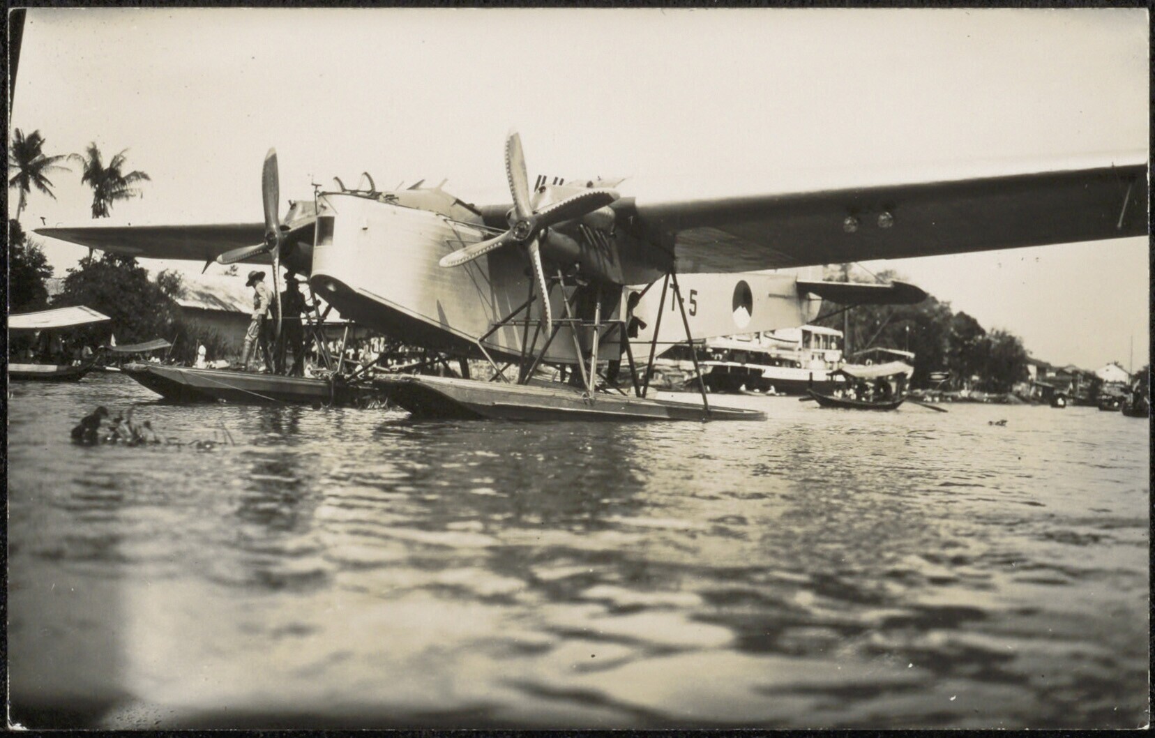 Een vliegboot van de MLD, geland bij Tandjoengbalai