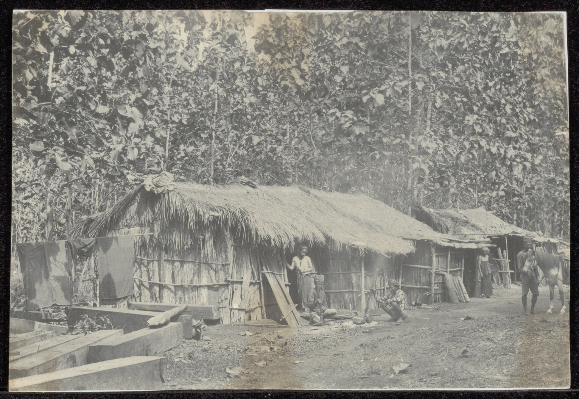 Hutten van houtkappers die werkzaam zijn in een djat...