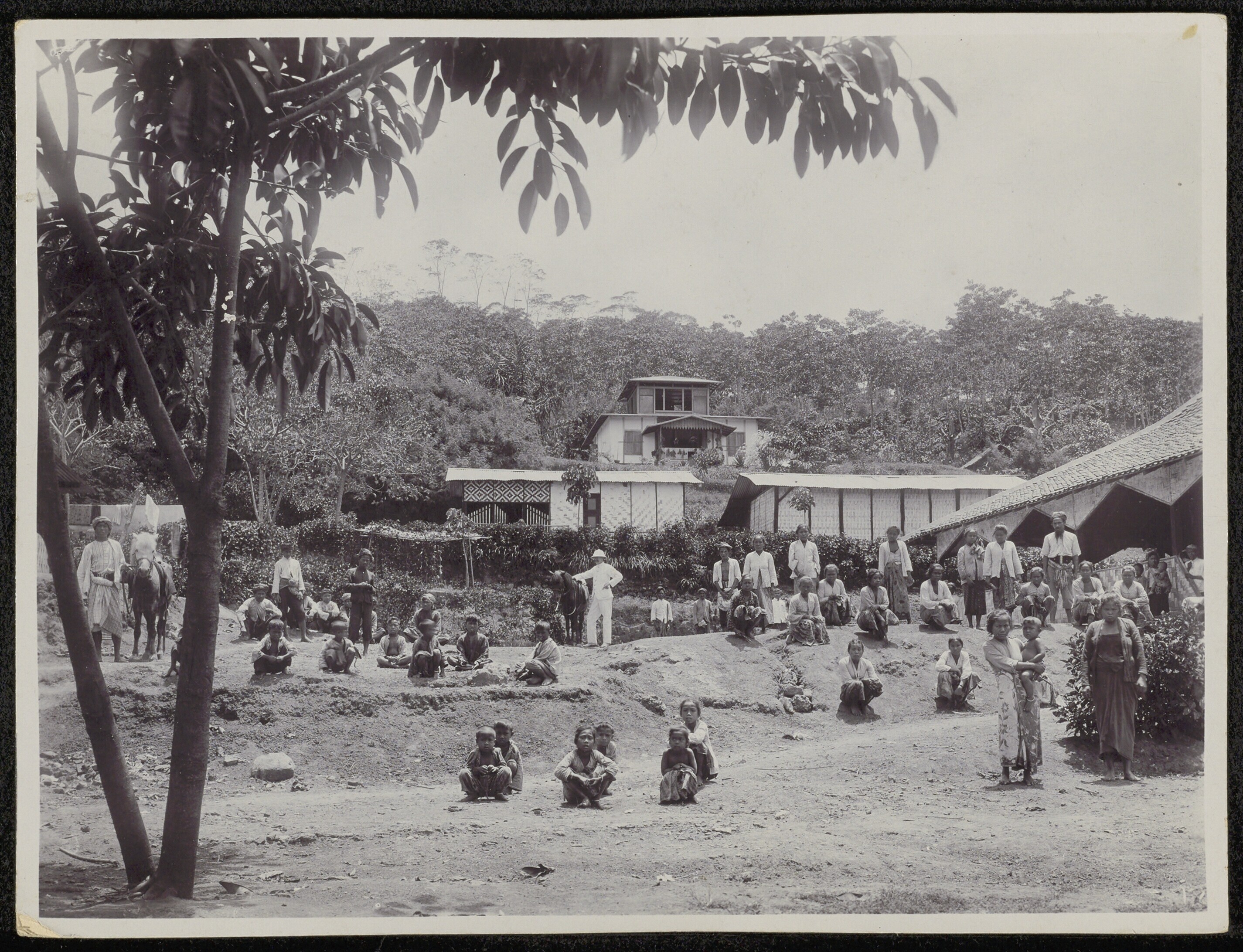Europeanen en Indonesiërs tijdens grondbewerking op ...