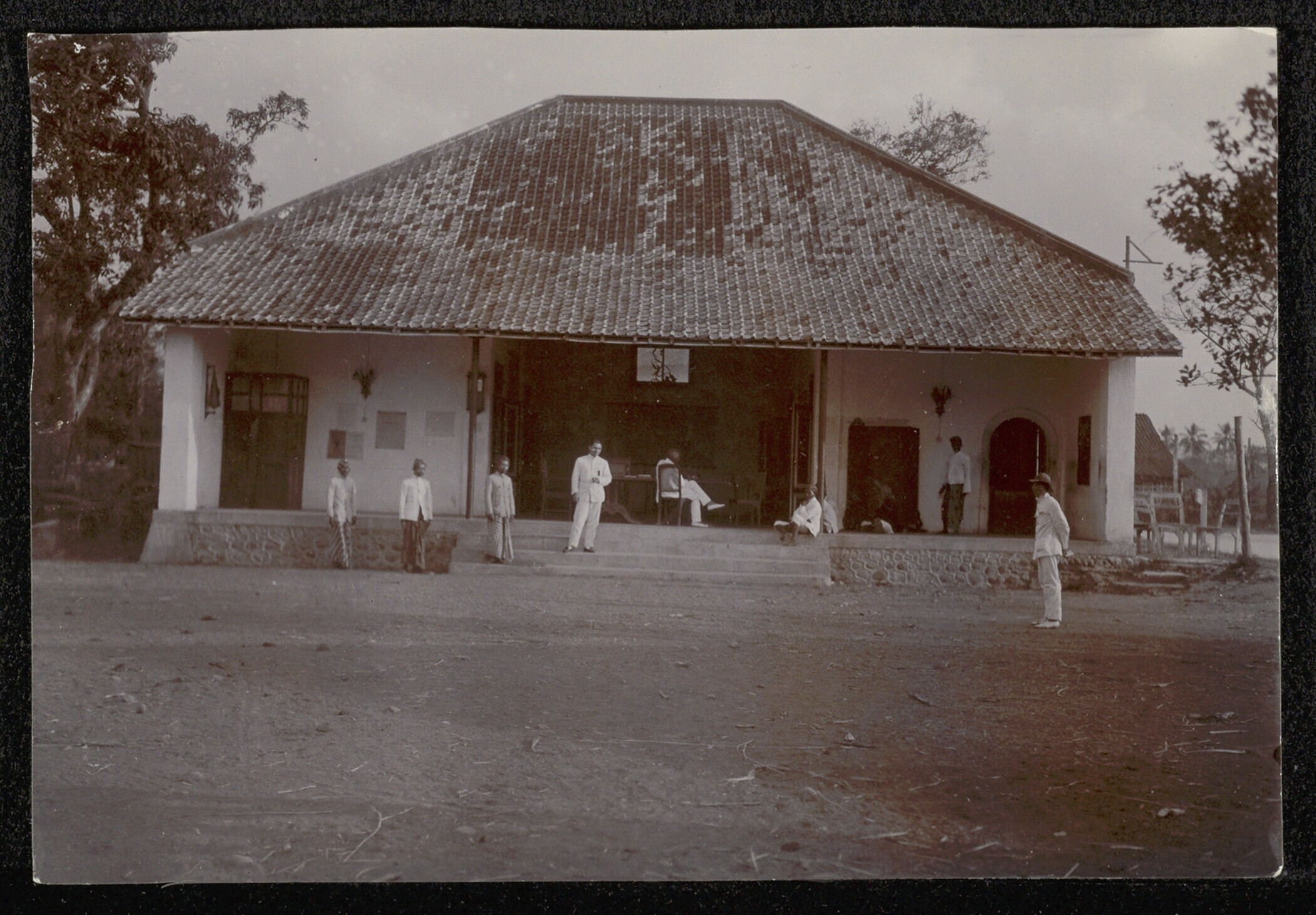 Een dokter (?) op de veranda van de dokterswoning me...