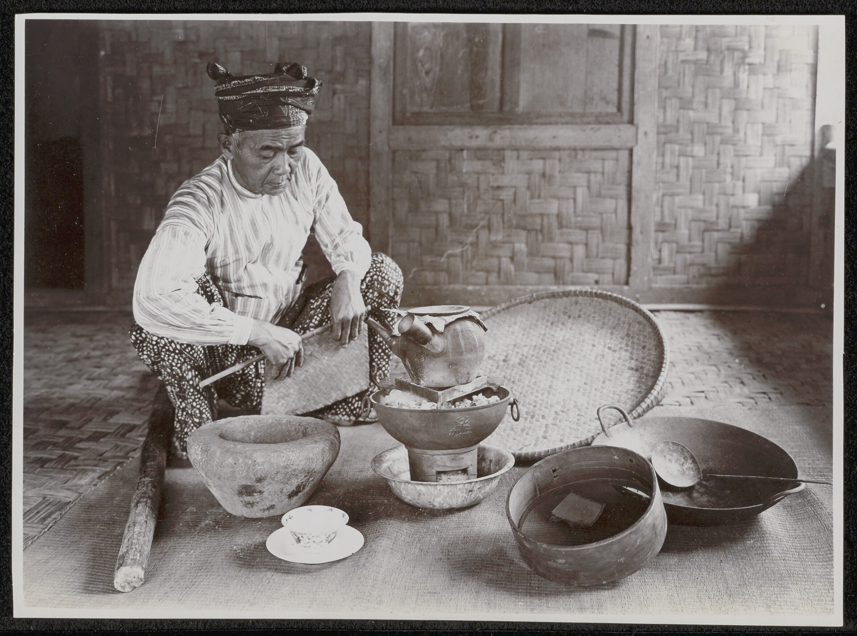 Javaanse arbeidsters aan het werk bij droogbakken me...