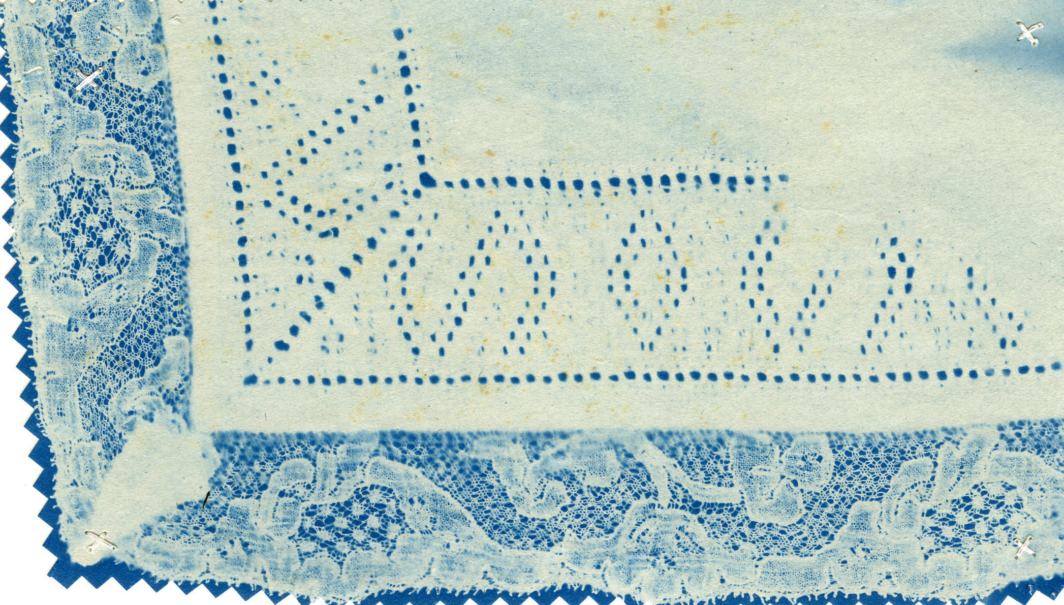 Wit doekje met witwerk en kloskant, Marken (blauwdru...