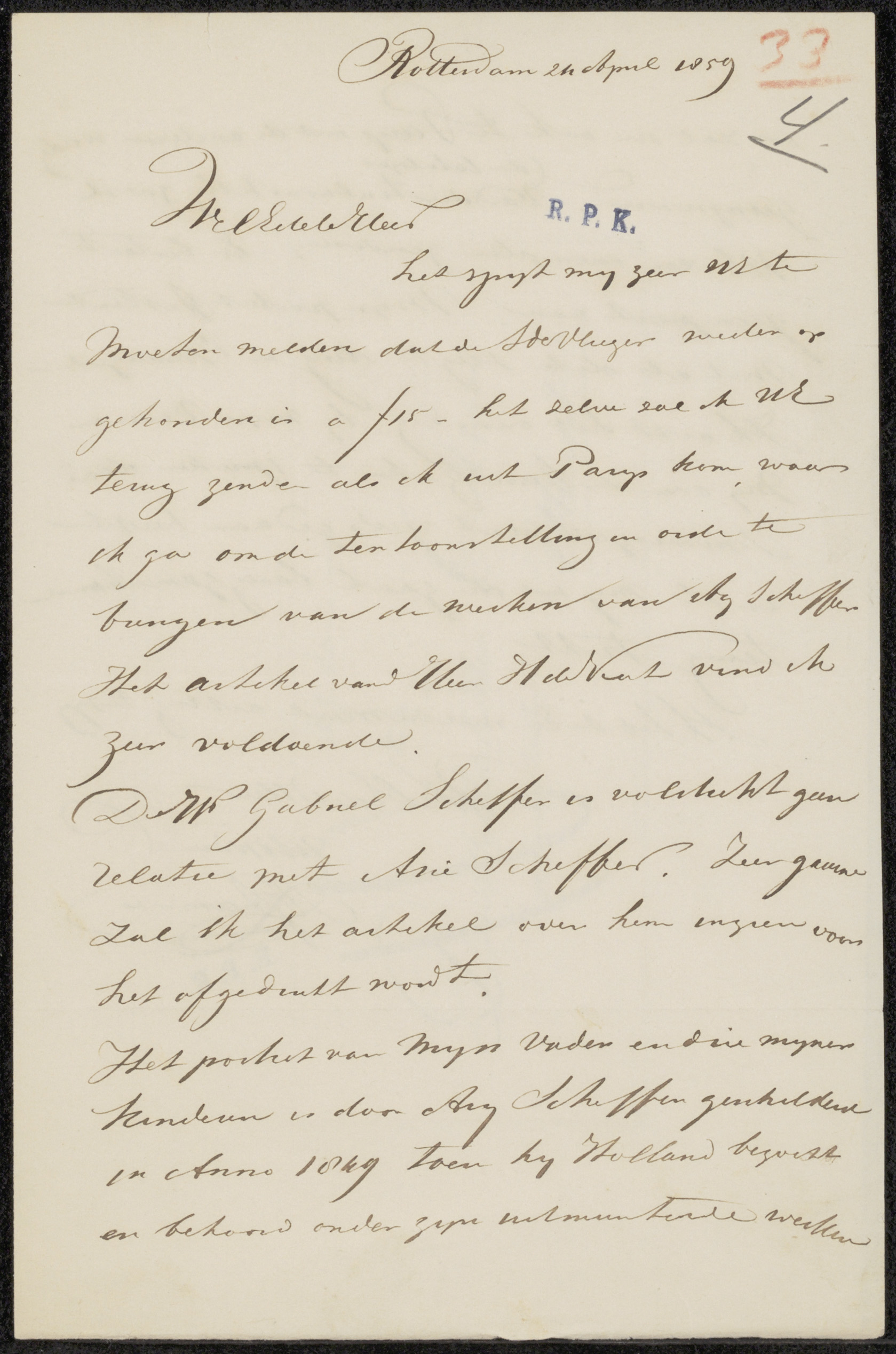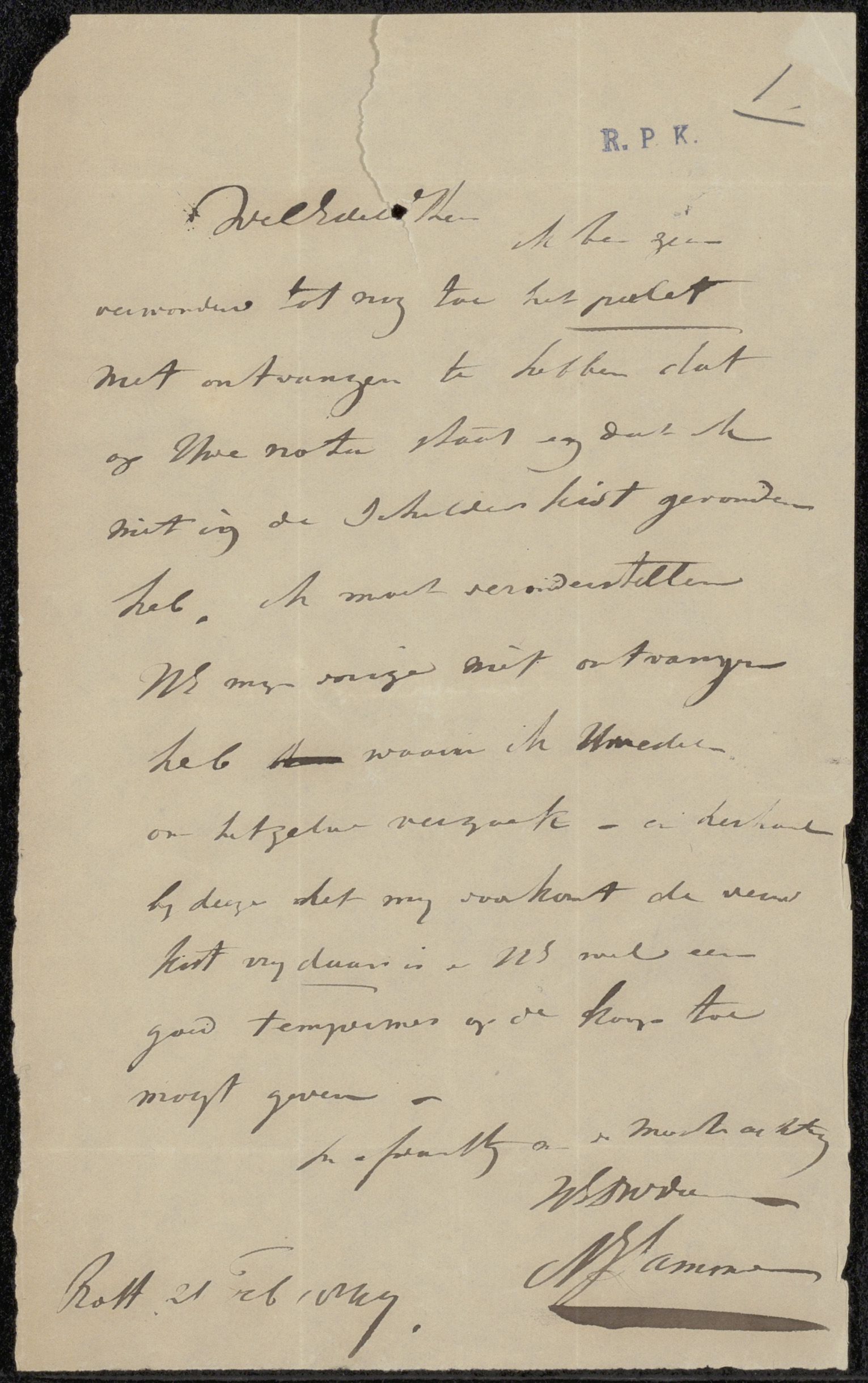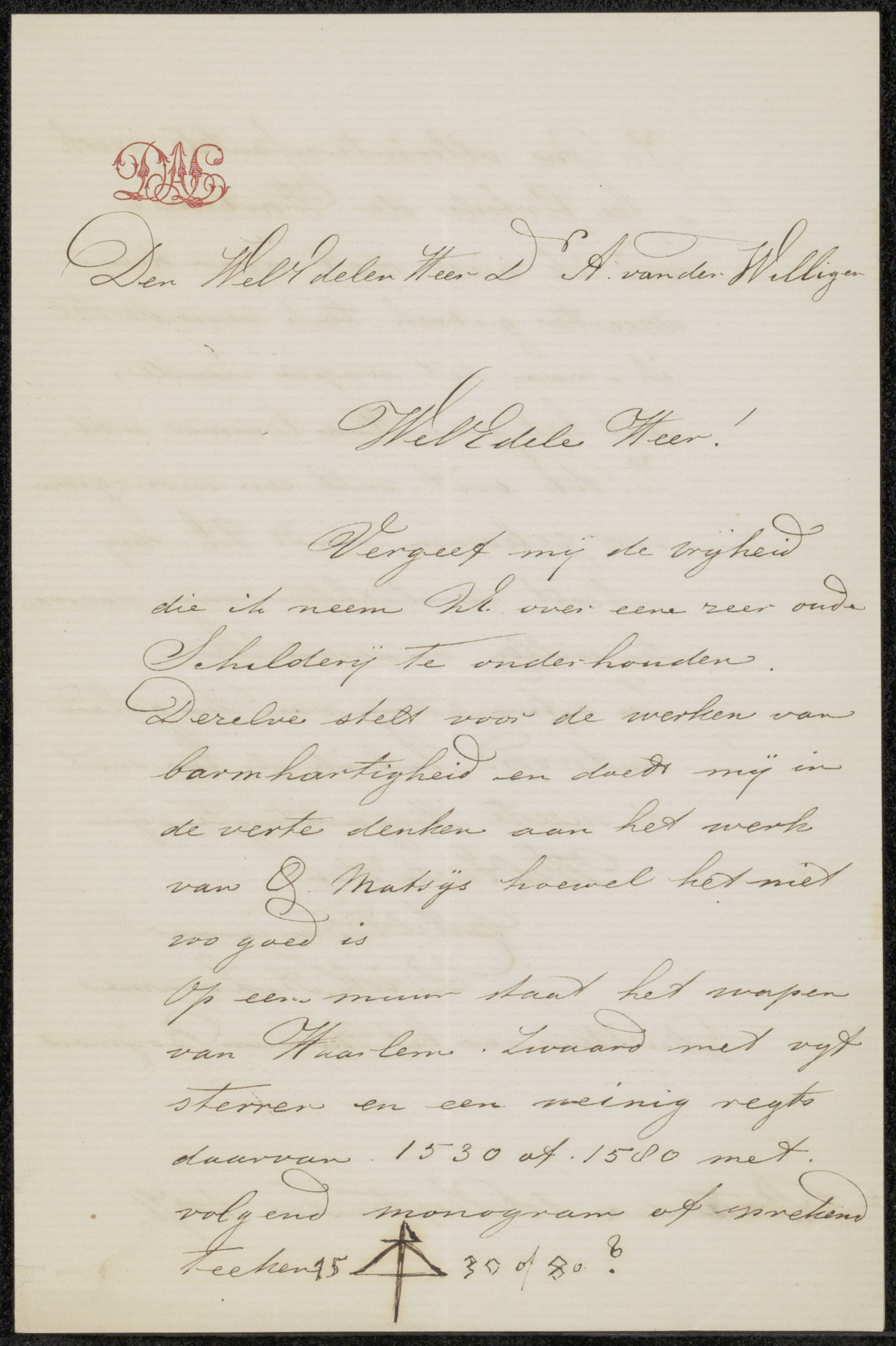 Brief aan Adriaan van der Willigen Pz