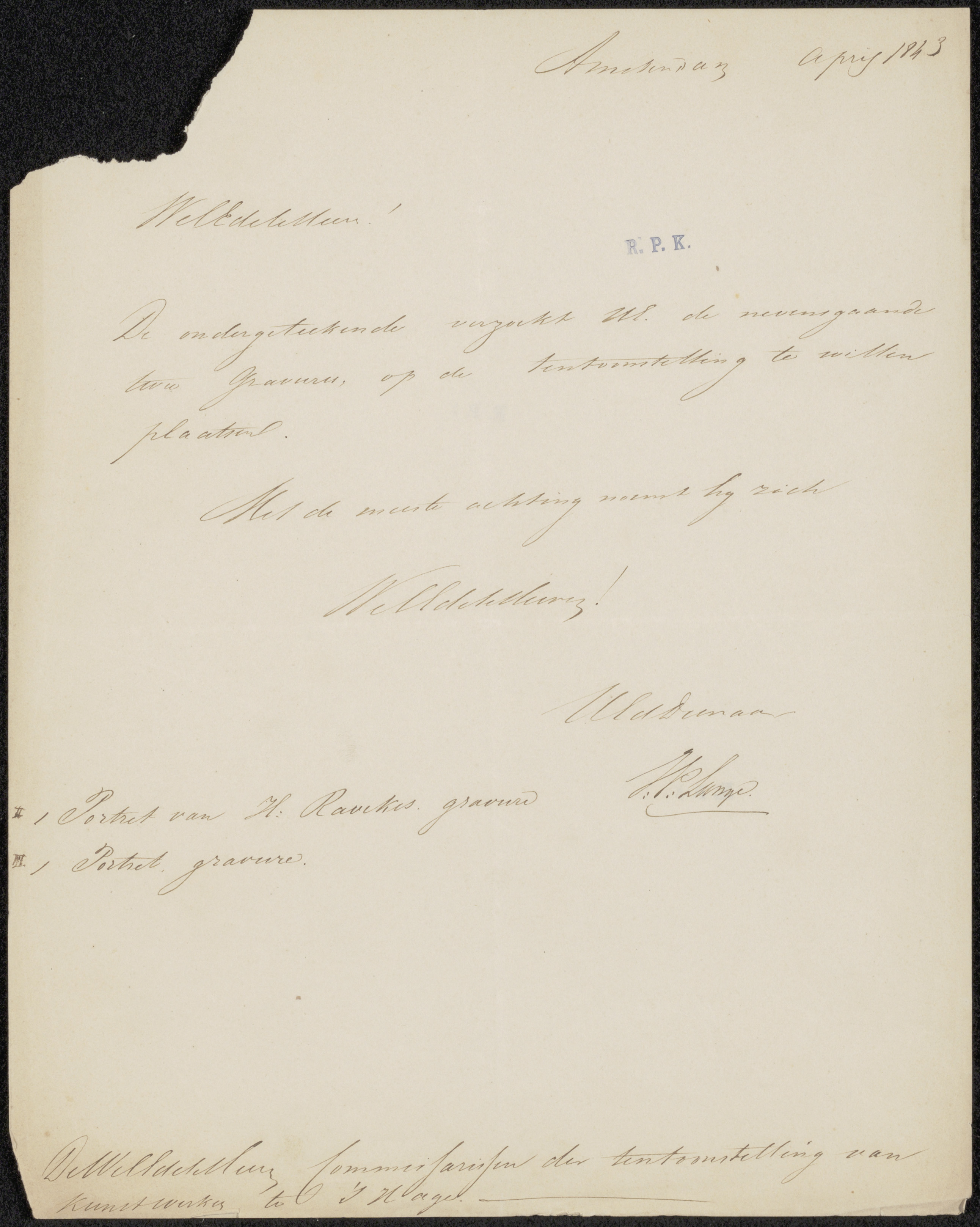 Brief aan de commissie van de Tentoonstelling van Le...