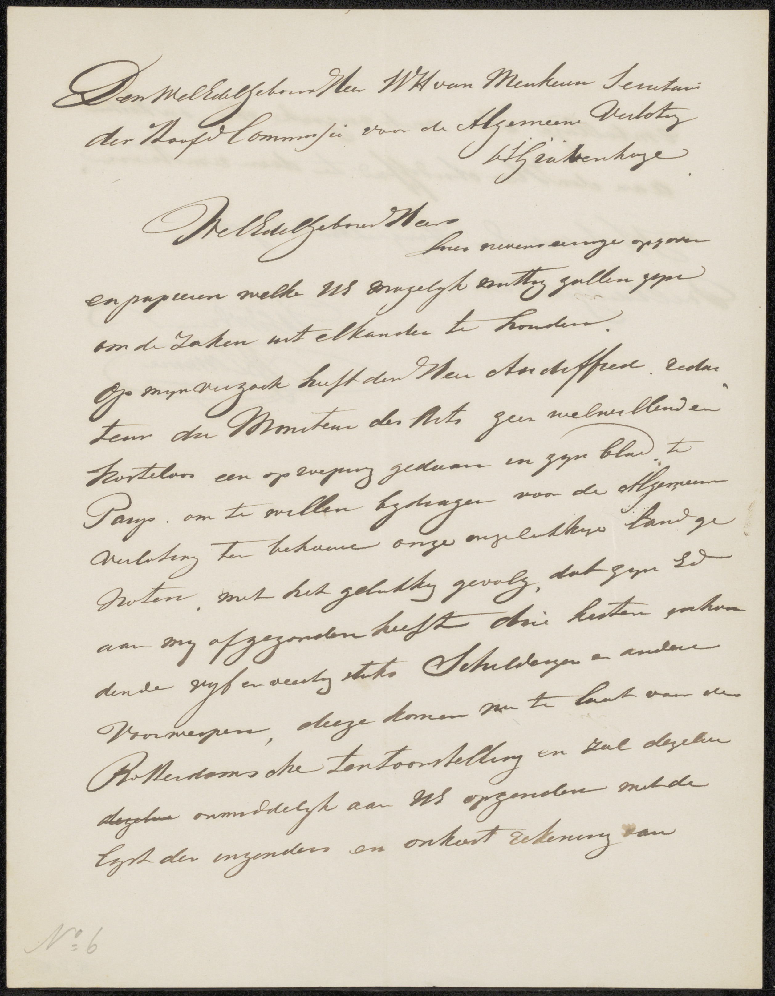 Brief aan de secreteris van de commissie van de Alge...