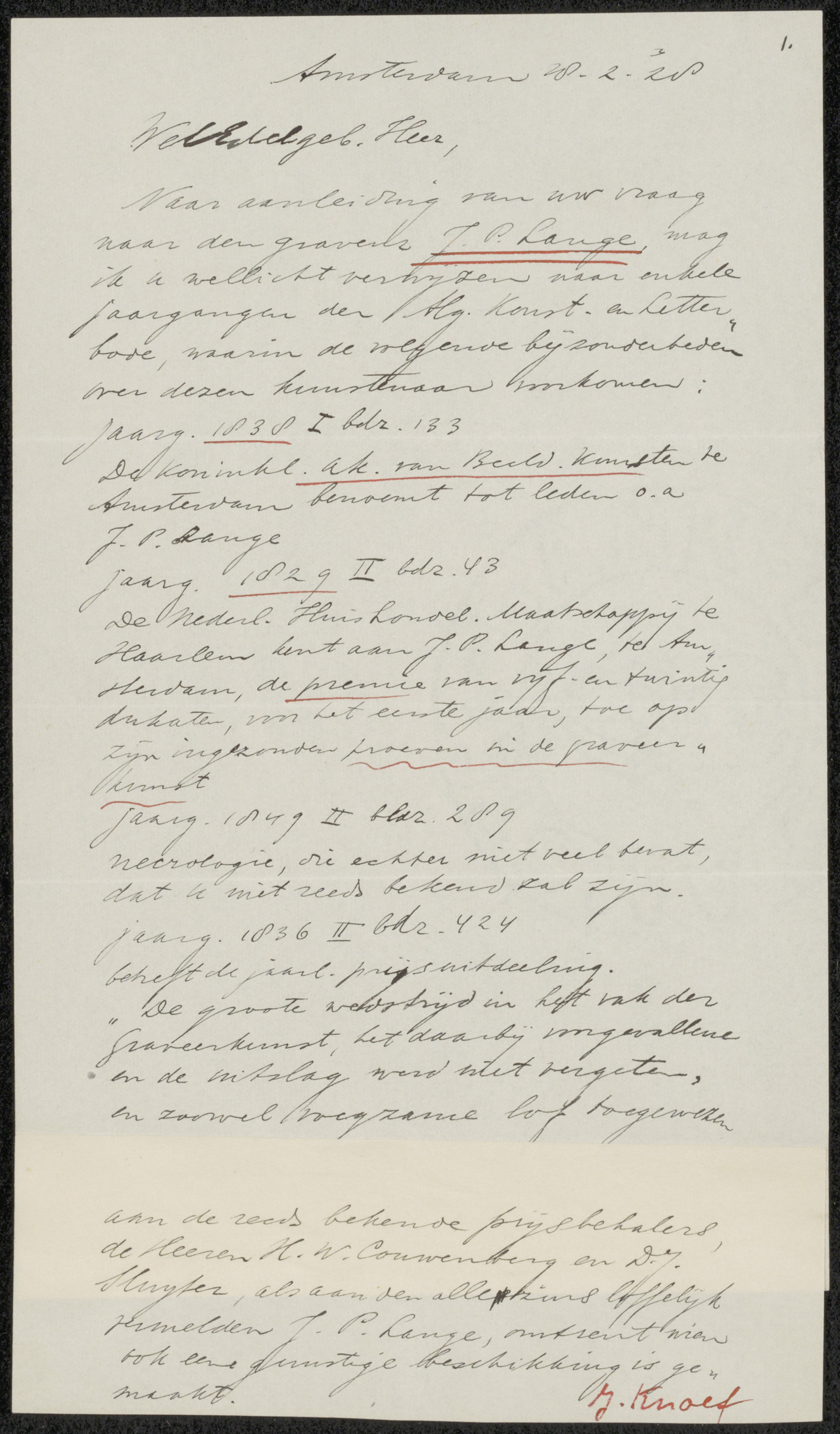Brief aan Johan Philip van der Kellen