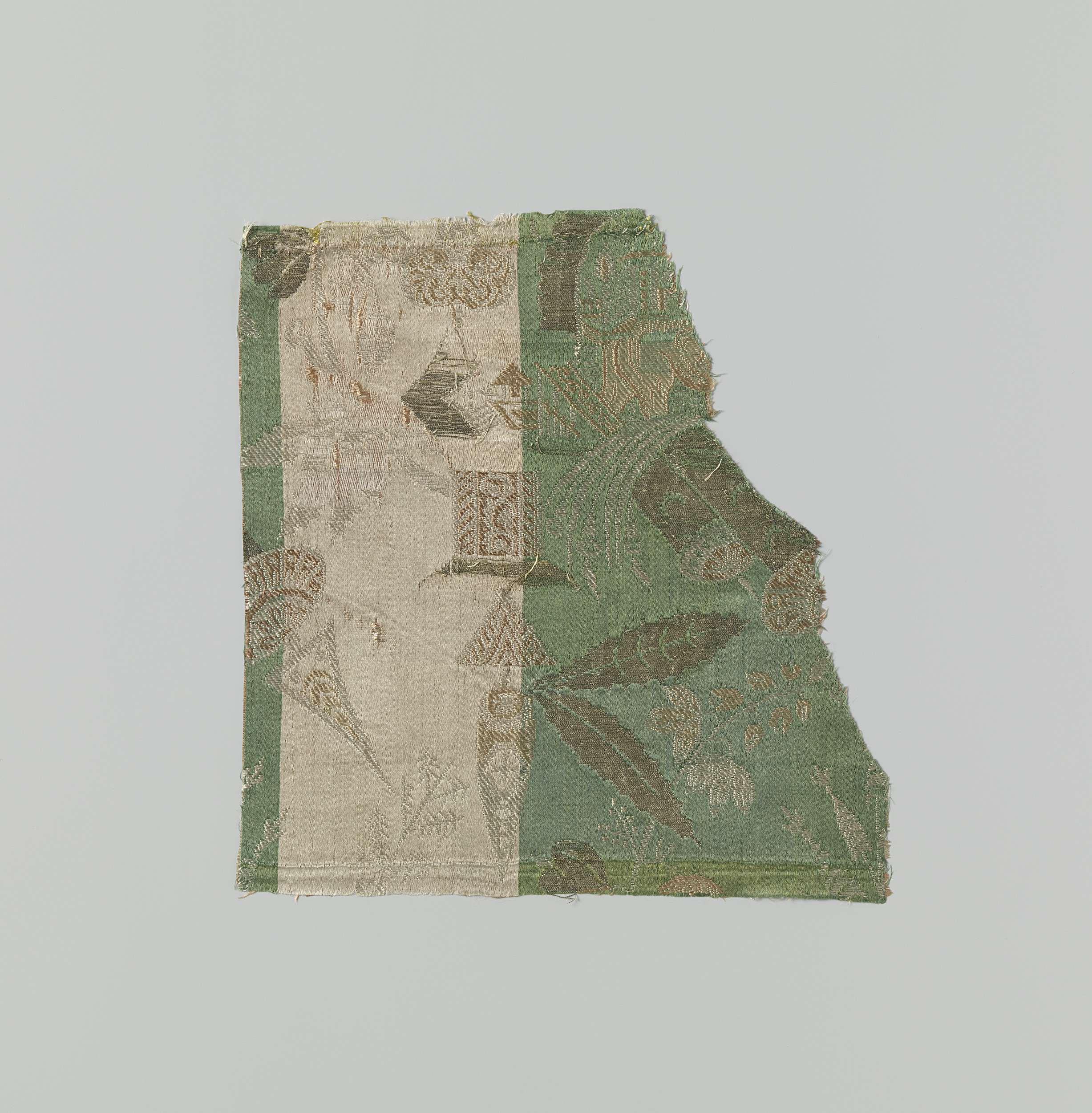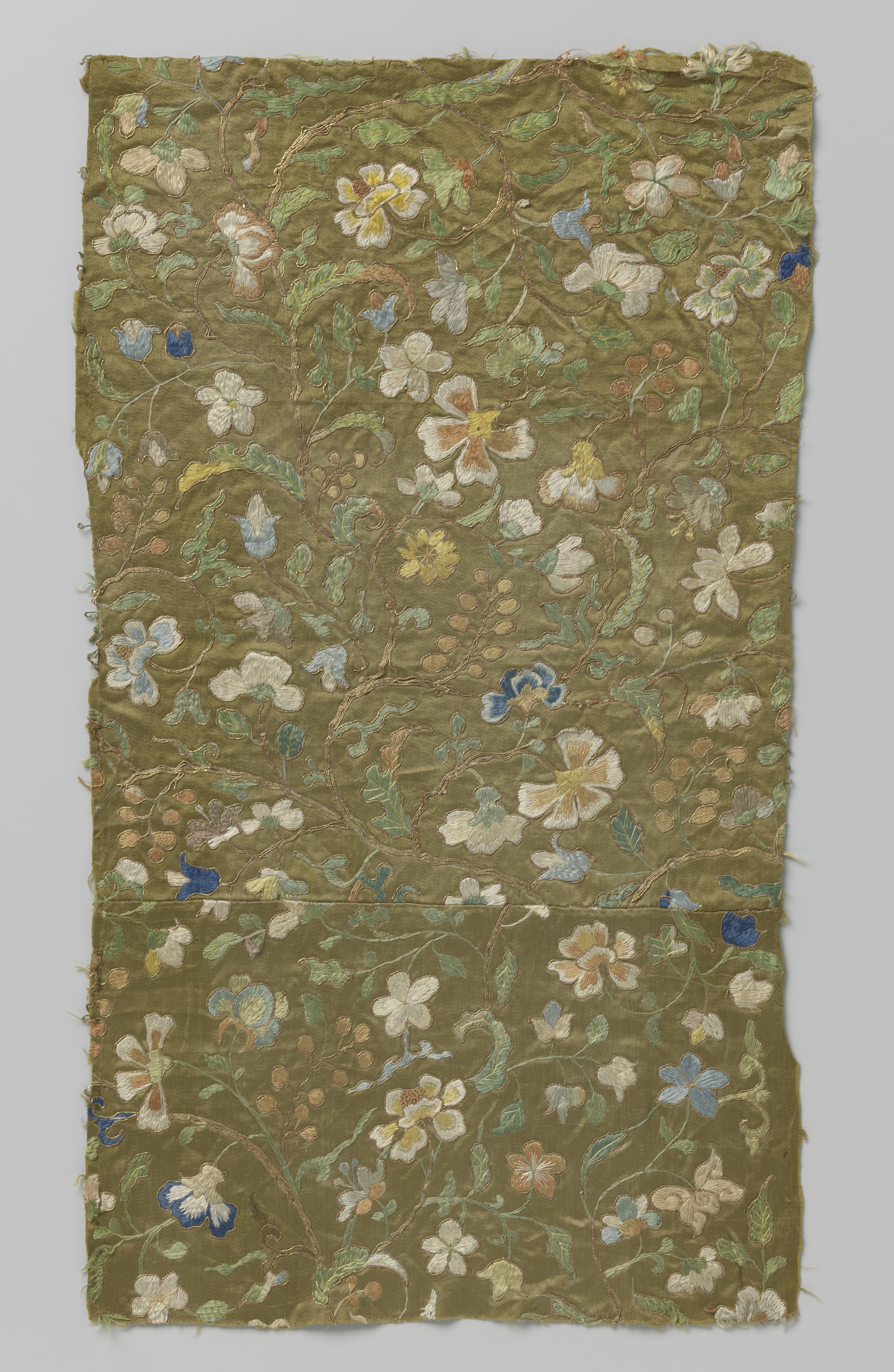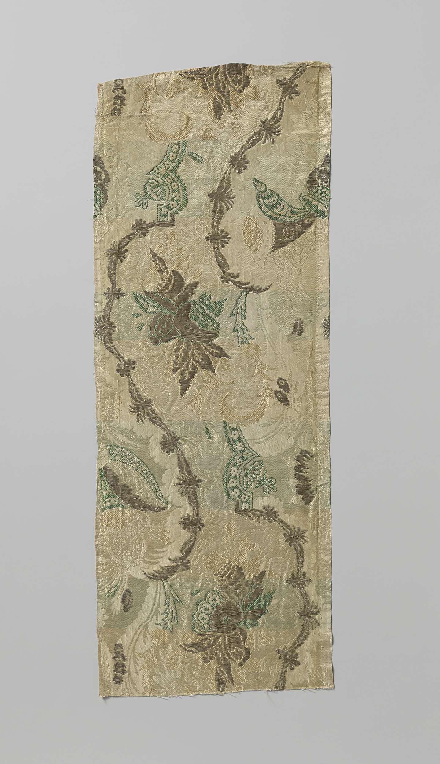 Fragment gebrocheerde zijde met patroon van bloemen ...