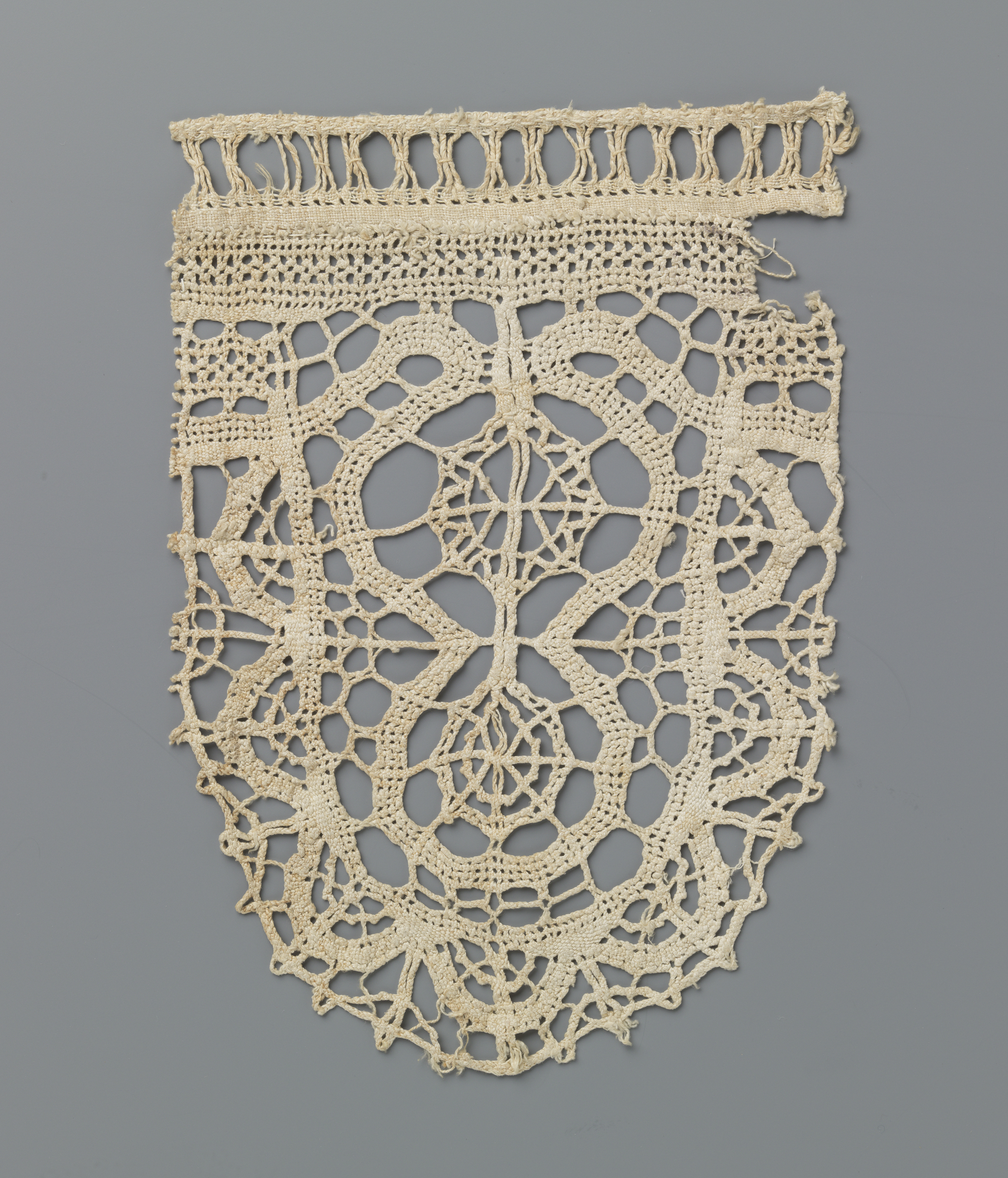 Fragment geknoopte kant met twee cirkeltjes