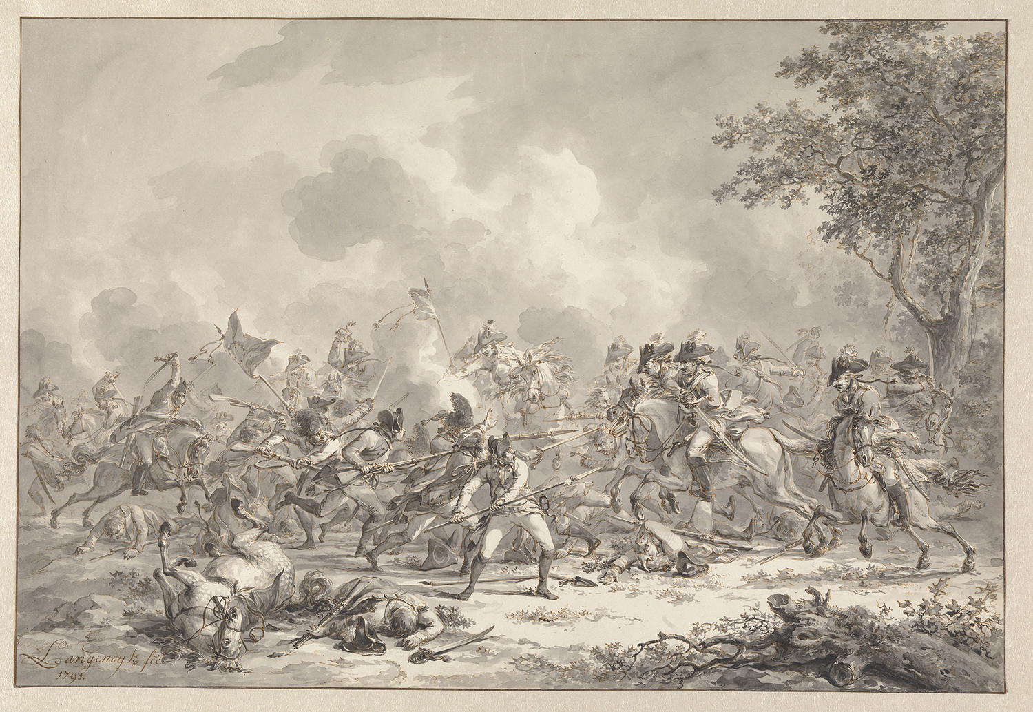 Een hevig gevecht tussen ruiterij en voetvolk