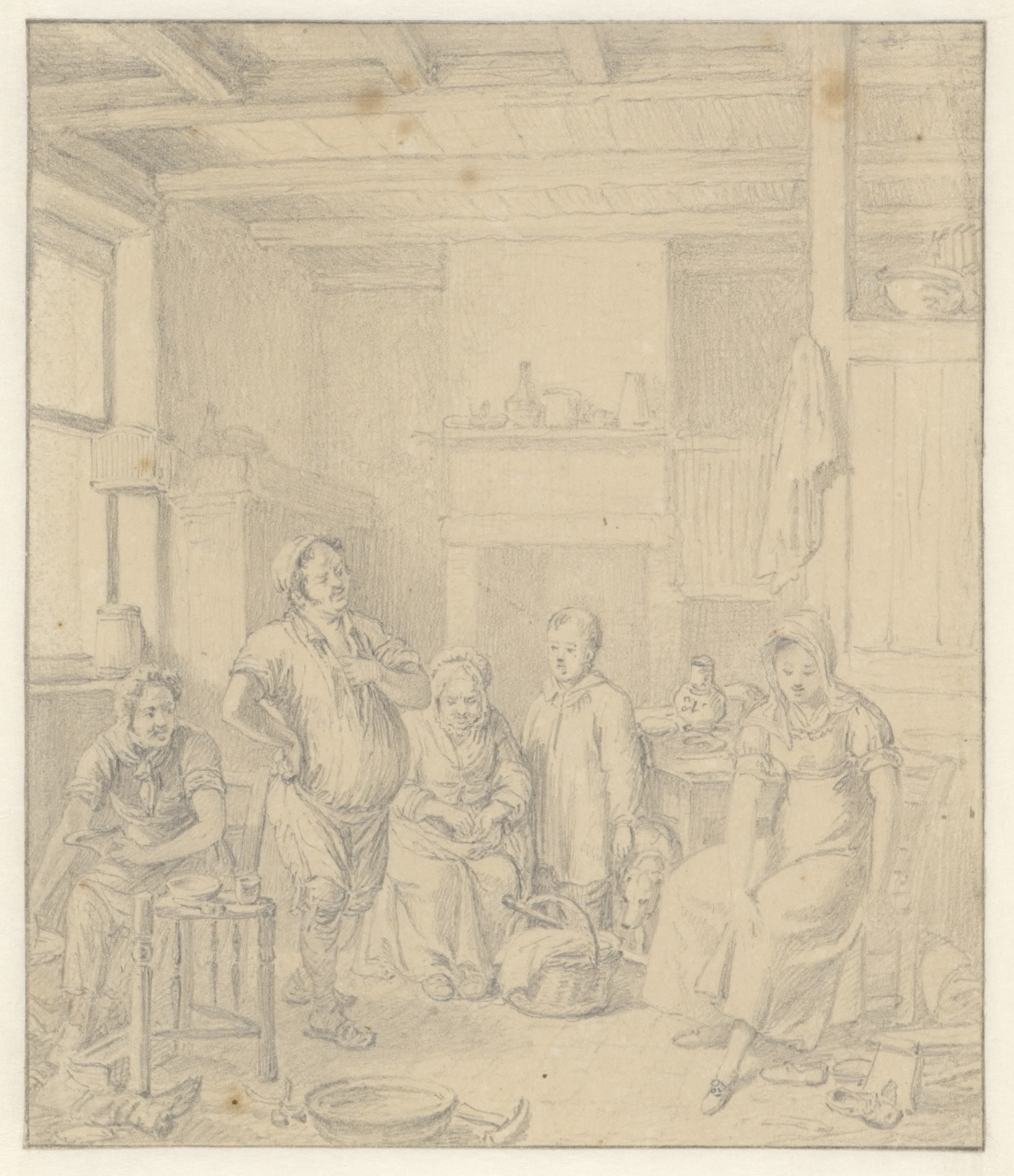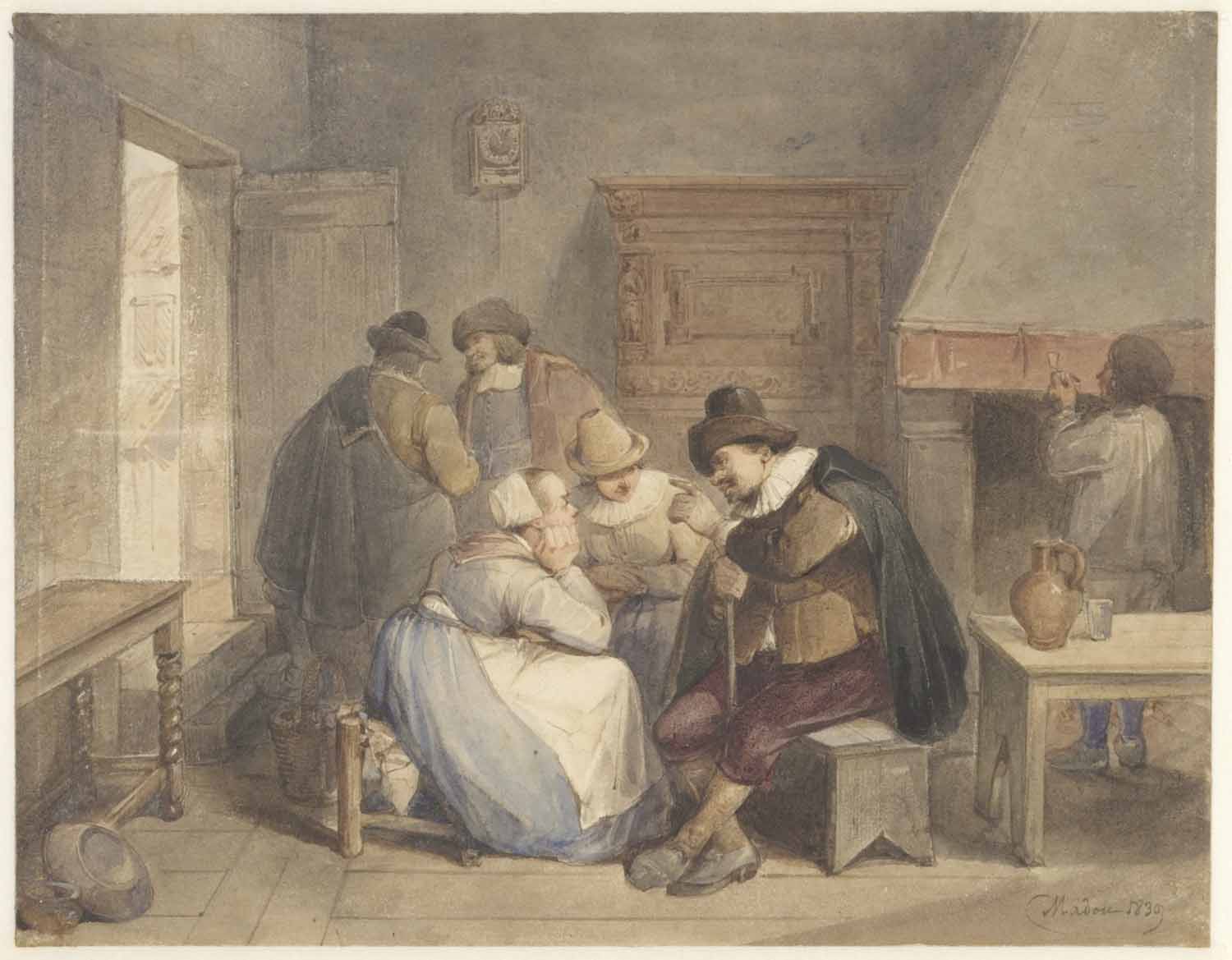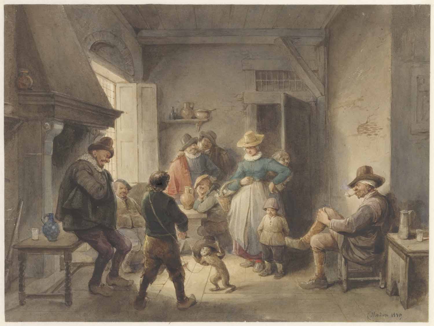 A. van Ostade in eene herberg waar eenige boeren vec...