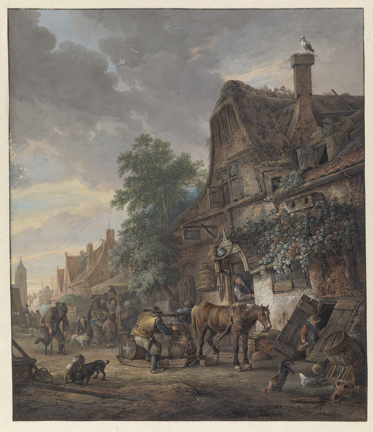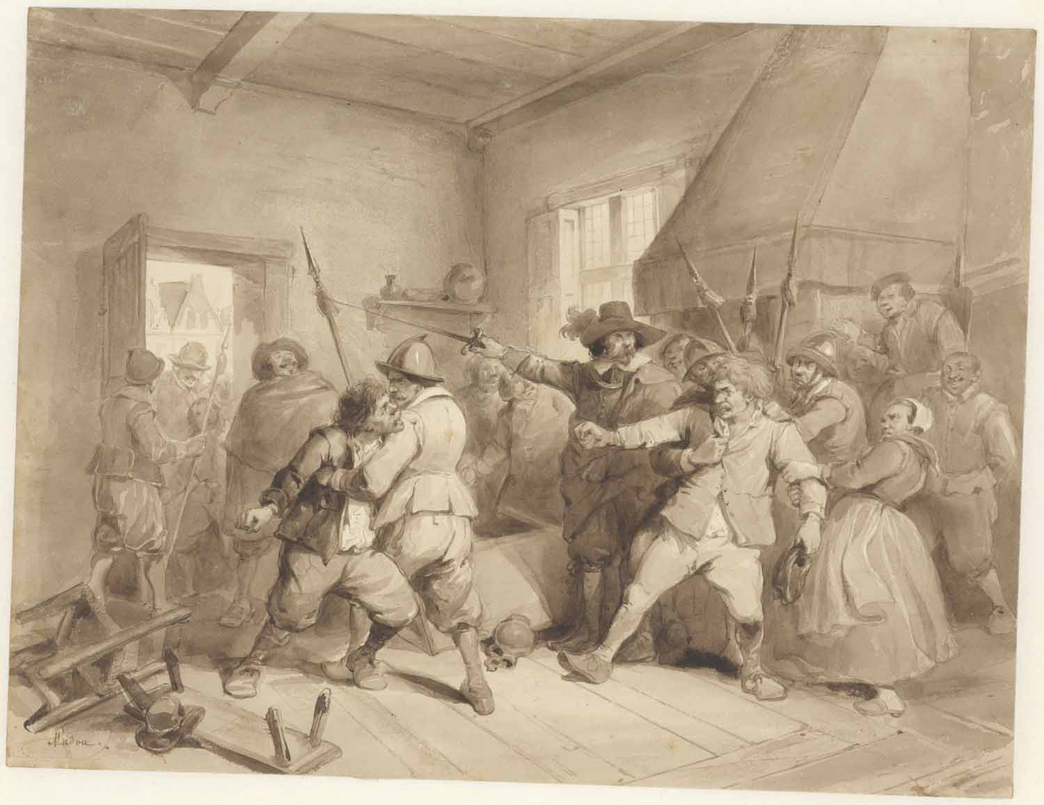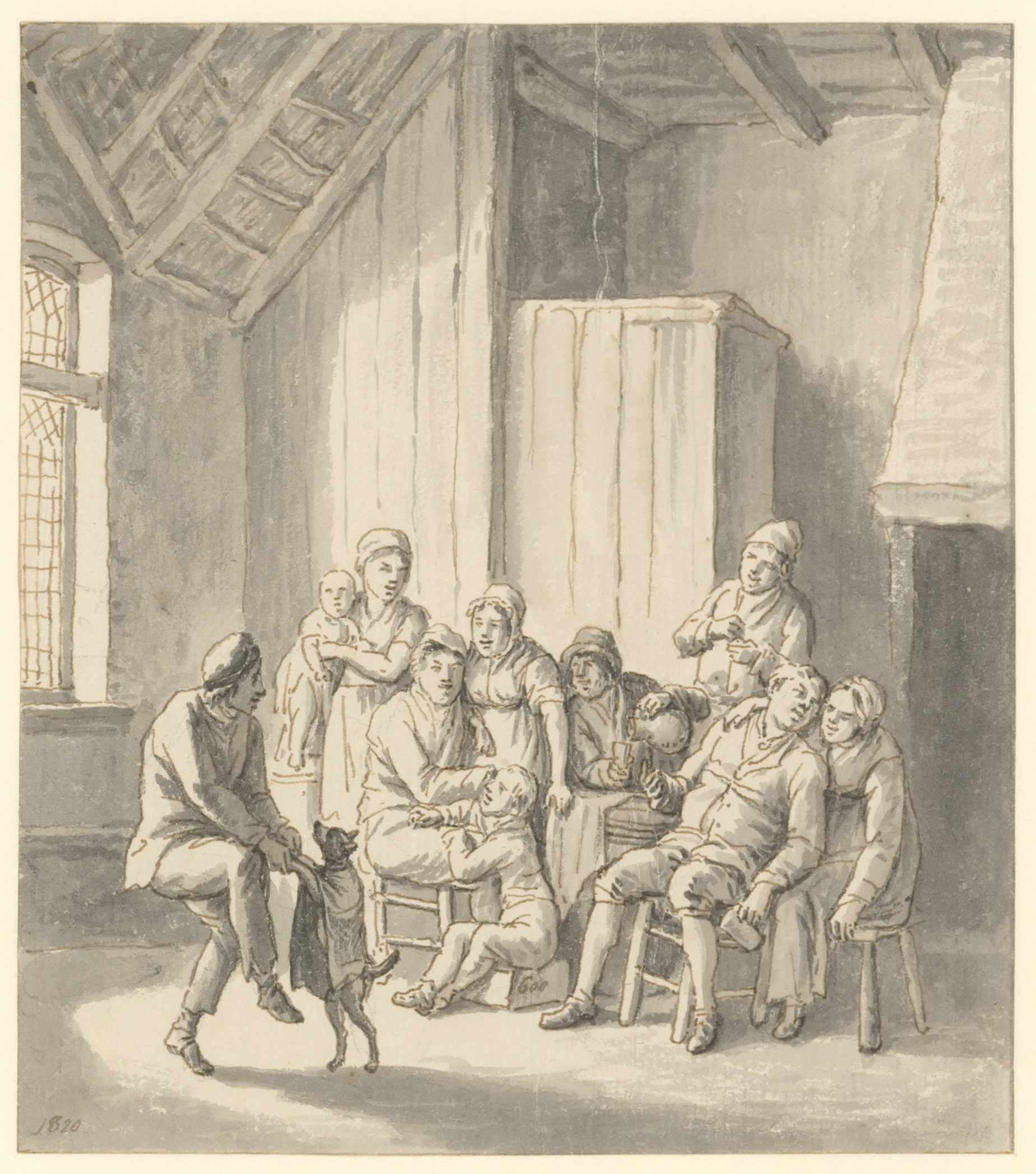 A. van Ostade in eene herberg waar eenige boeren vec...