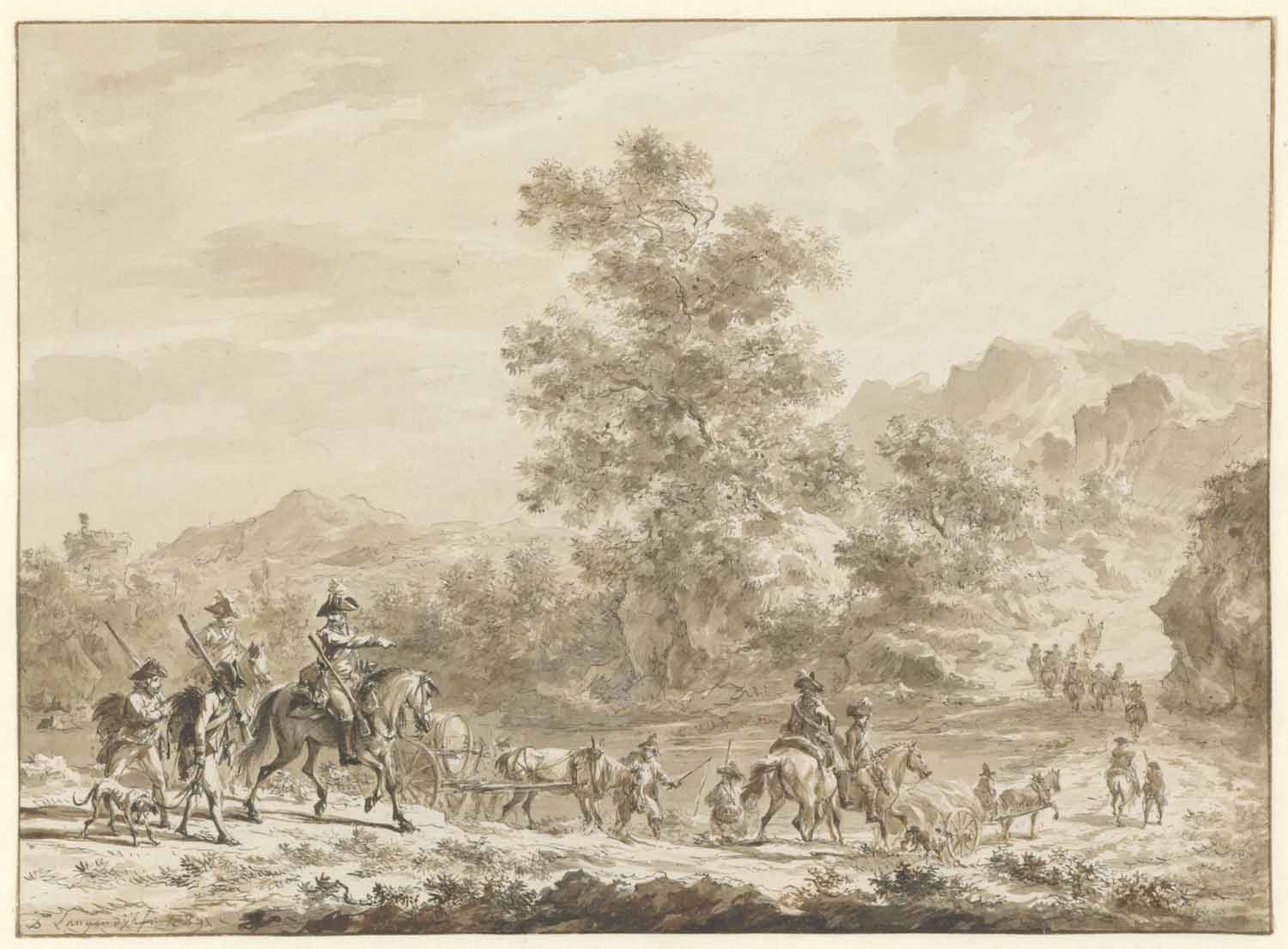 Militairen door een Berglandschap trekkende