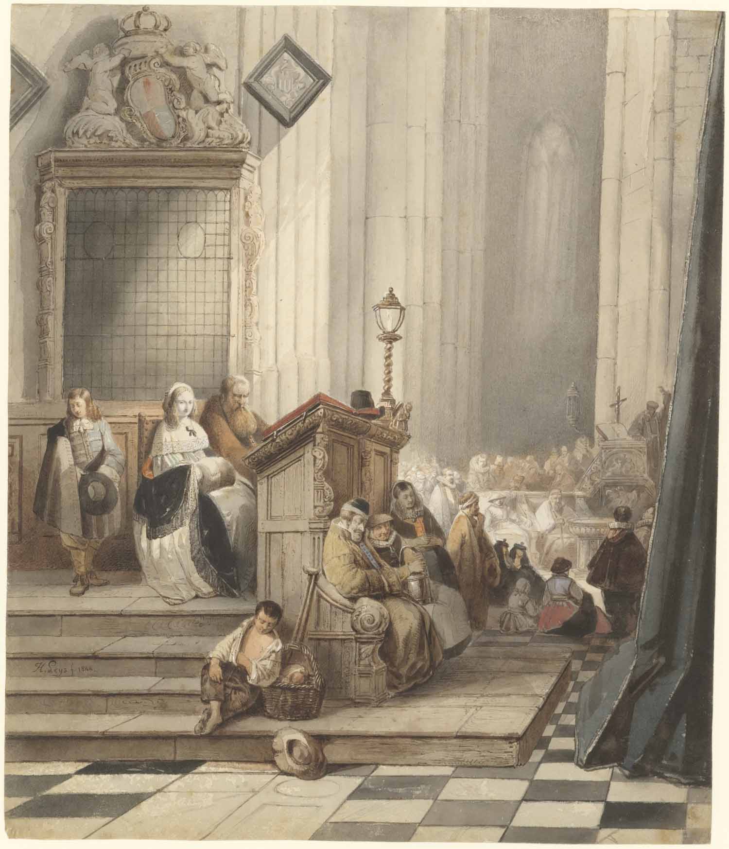 Eene kerk van binnen met vele beelden 17e eeuws kerk...