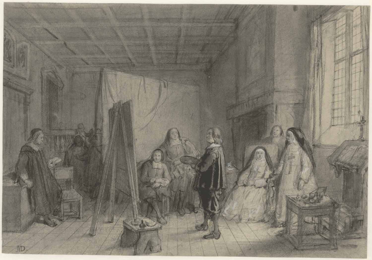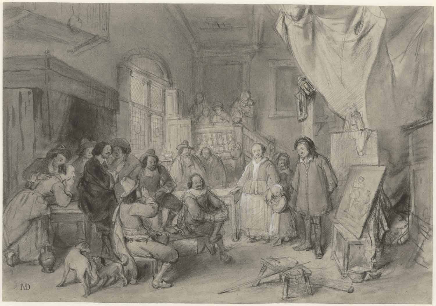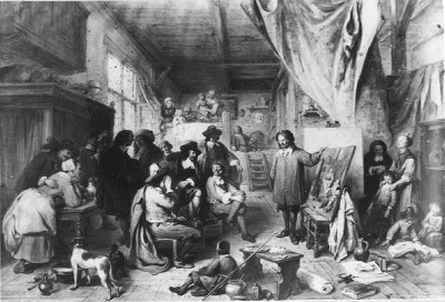 Jan Steen zijn werk latende bezigtigen