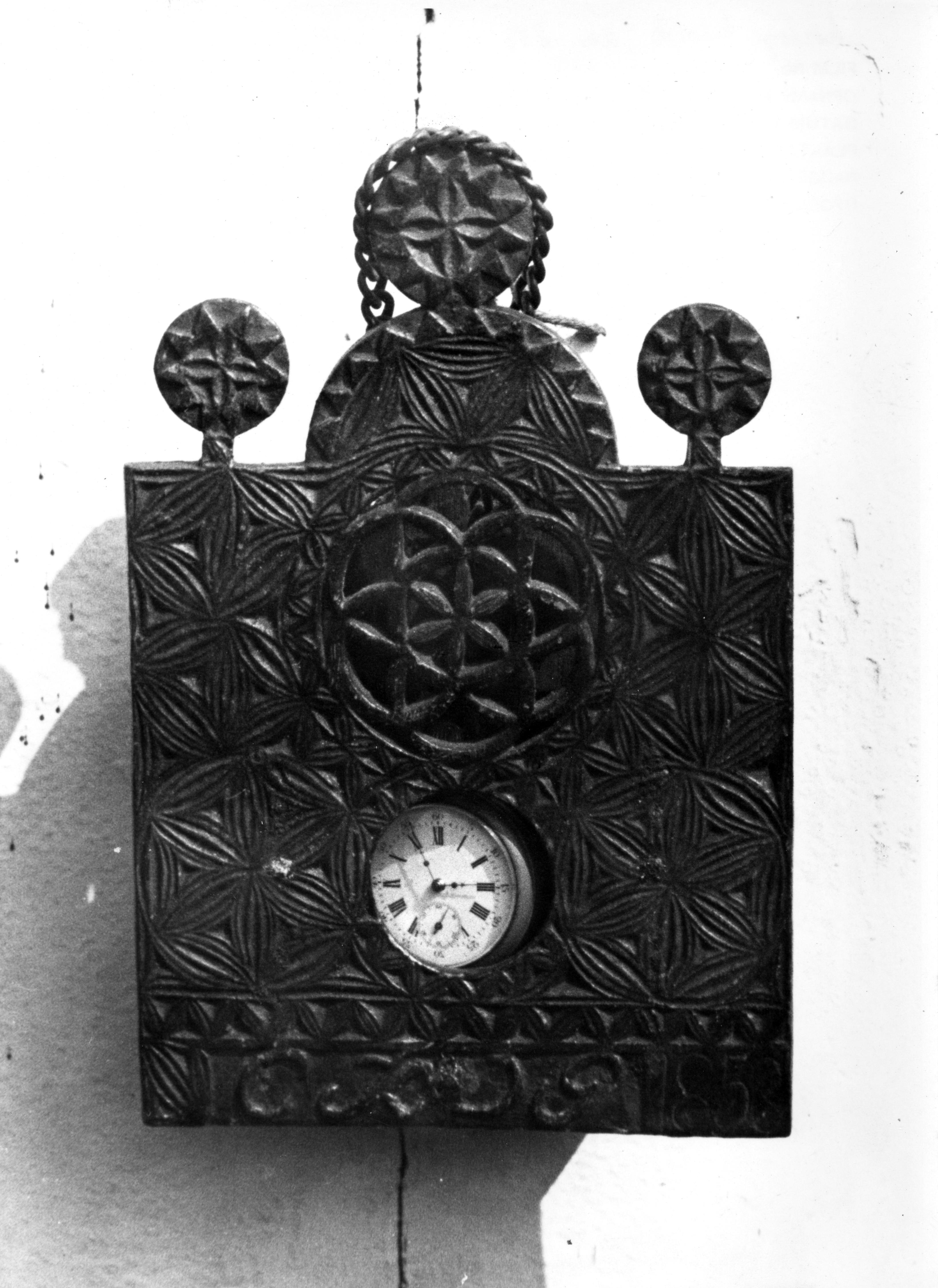 Horlogekastje uit 1859, Marken, 1943 (zwart-wit foto)
