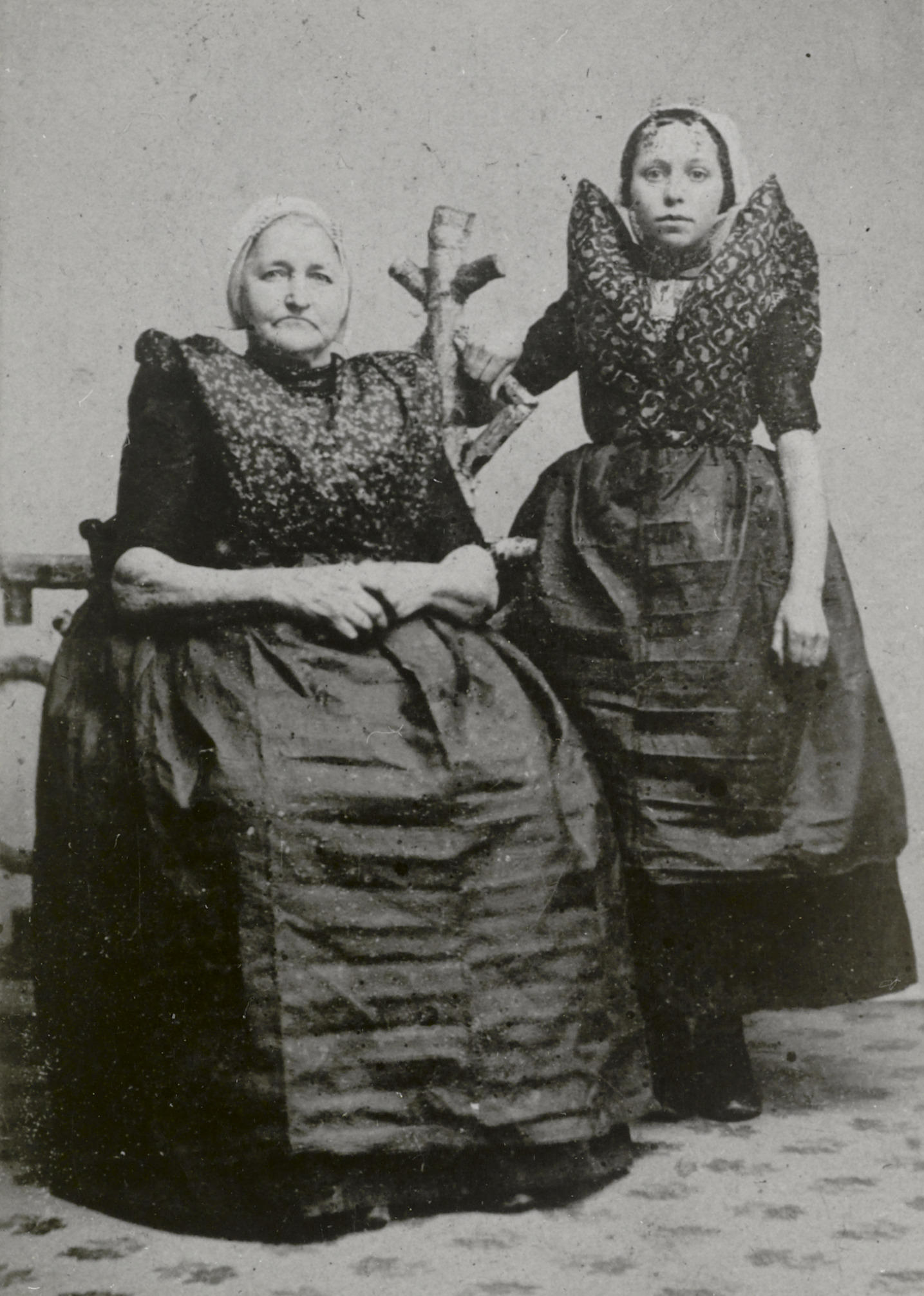 Twee vrouwen in streekdracht van Axel, circa 1900 (z...