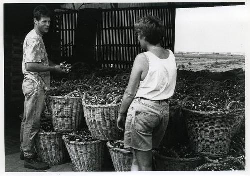 Foto in zwart-wit van rieten manden met gerooide nar...