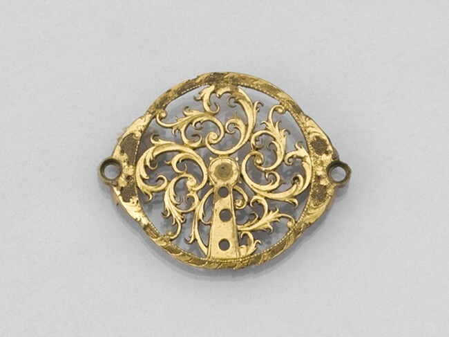 Horlogesleutel met daarin medaillon met aan de ene z...