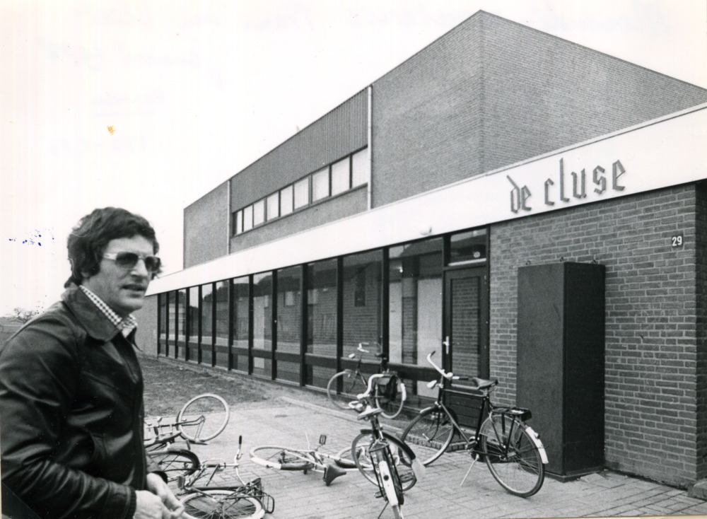 Zwart-wit foto van het buurthuis De Cluse in Herwen ...