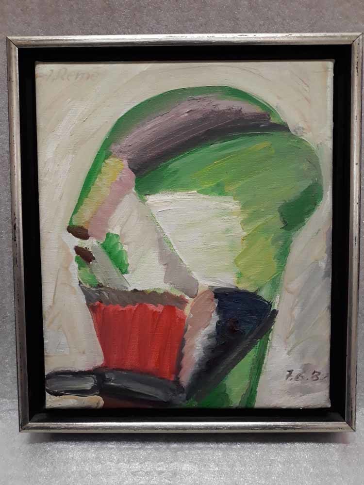 Stilleven met gipsen hand, fles en bijbel