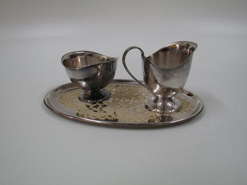 Roomstelletje bestaande uit verzilverde suikerpot, m...