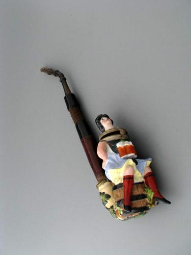 Porseleinen pijp in de vorm van een op een hand zitt...