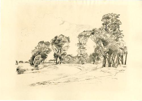 Lithografie van een landschap langs de Dongjumerlaan...