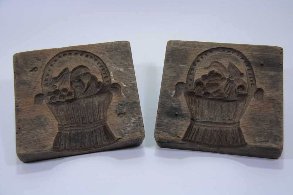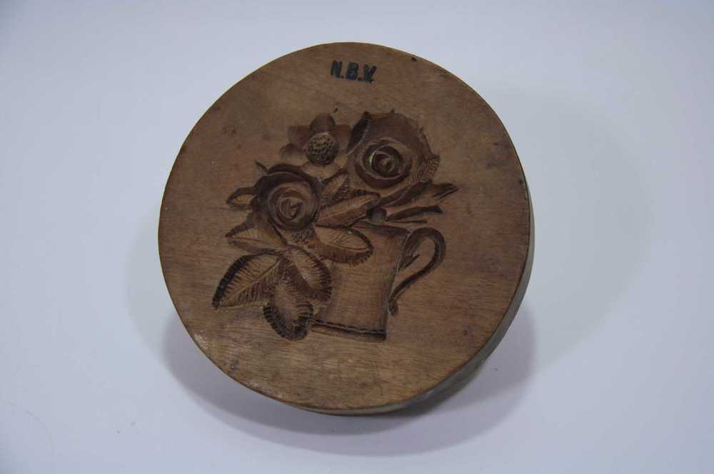 Marsepeinvorm van hout met afbeelding van bloemen en...